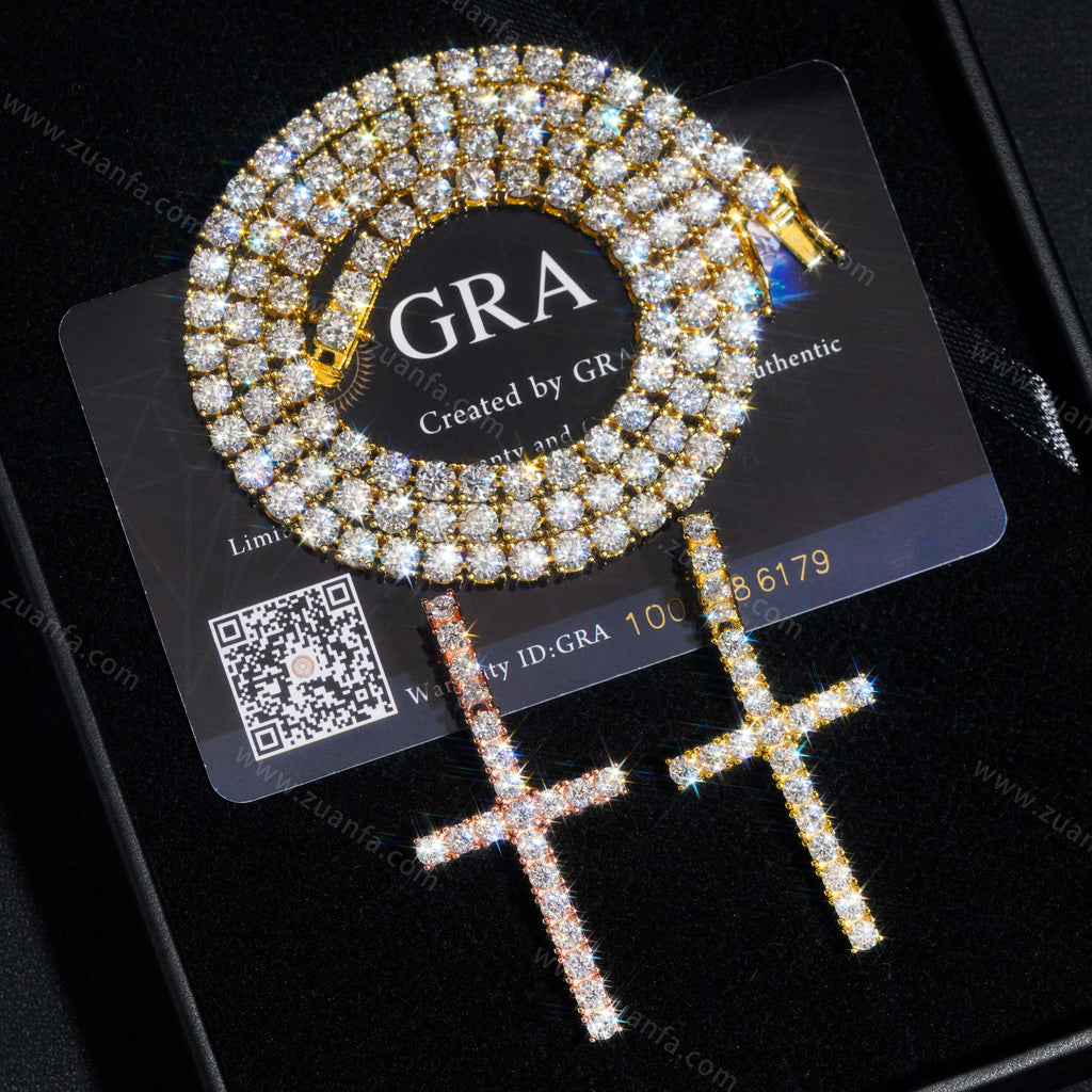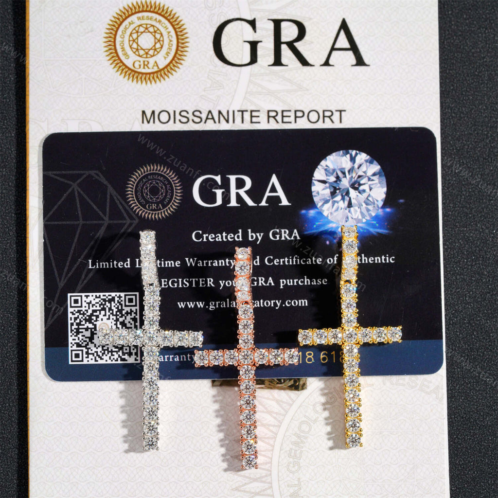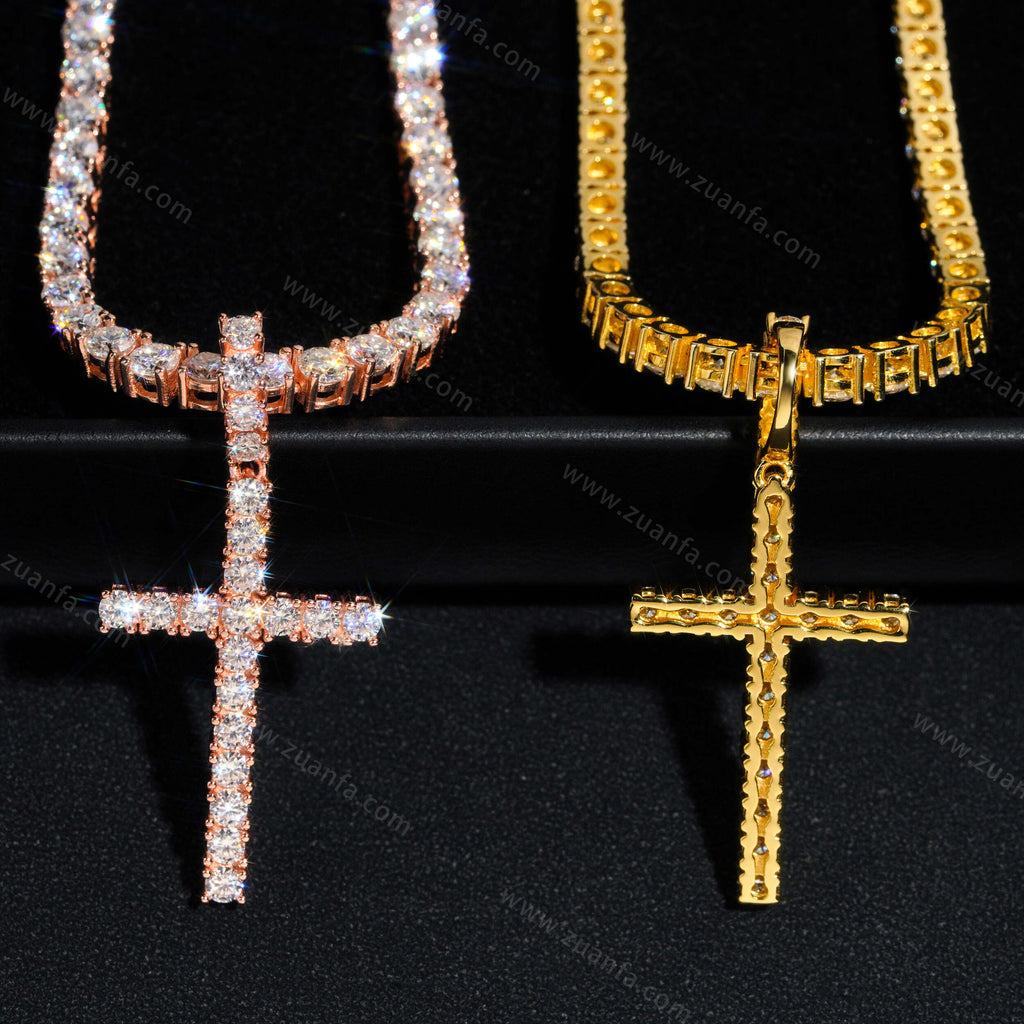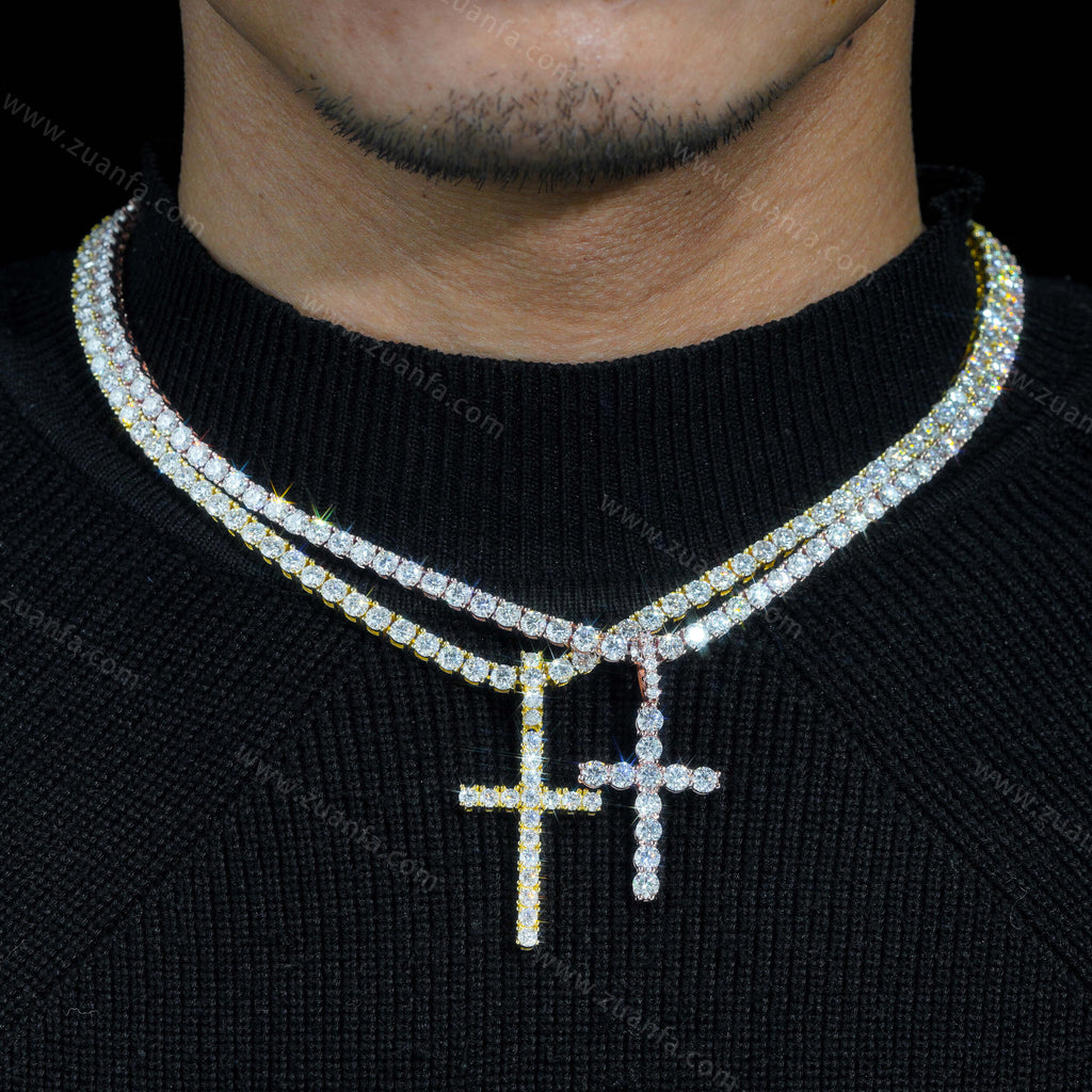 Hip Hop 3.0MM Moissanite Cross Pendant 18k Gold