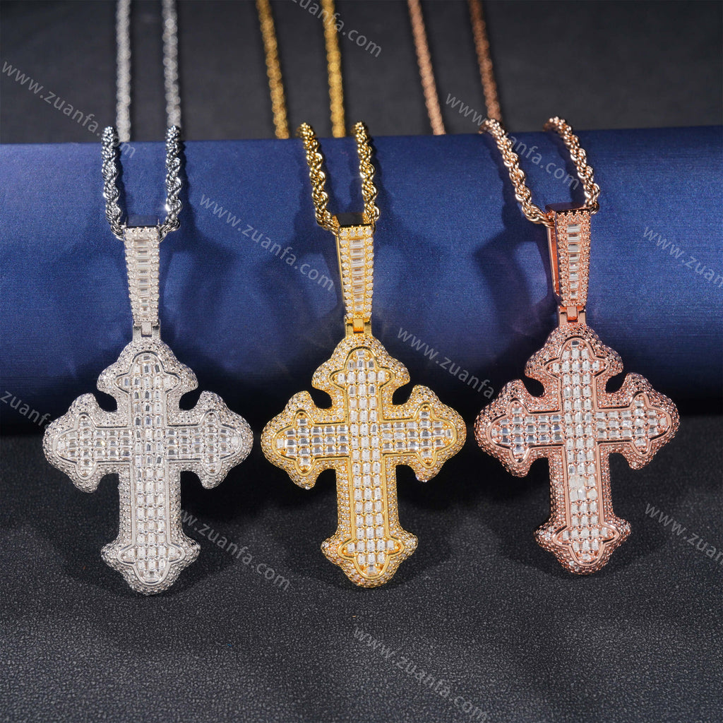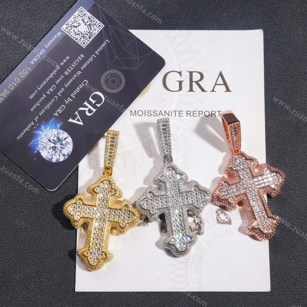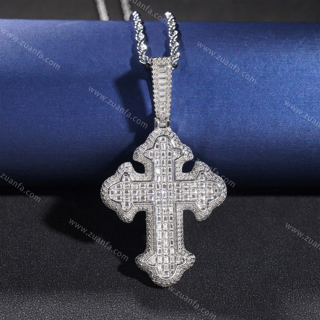 Hip Hop Iced Out Baguette Moissanite Cross Pendant