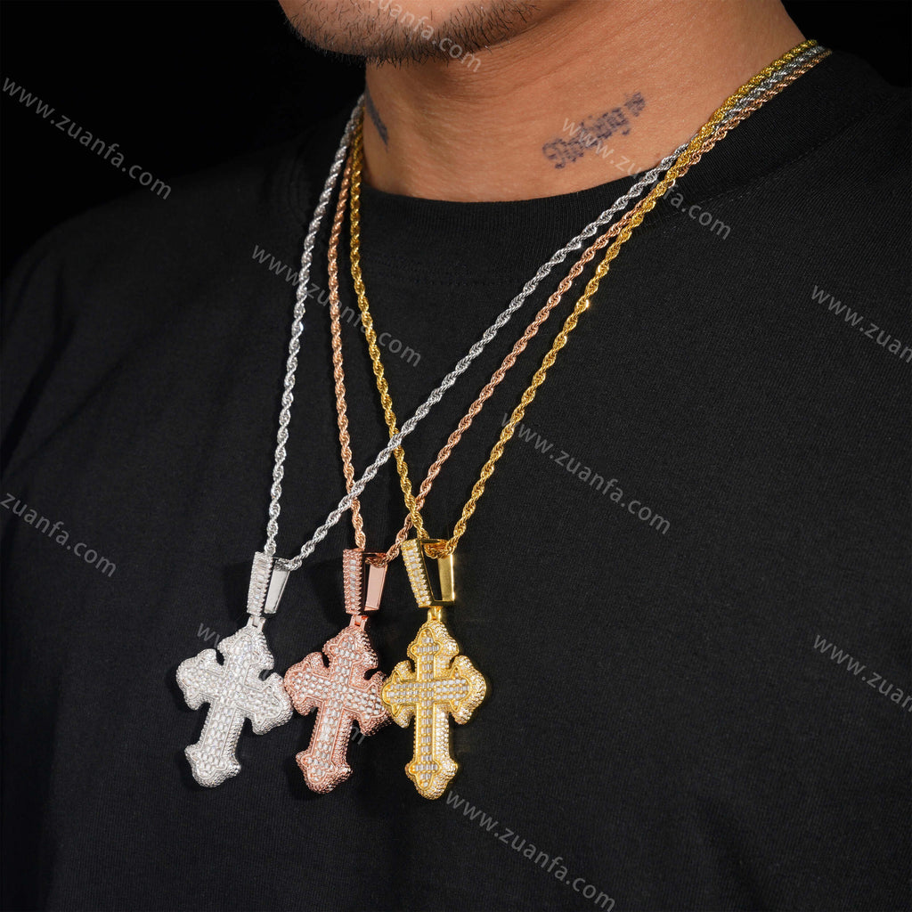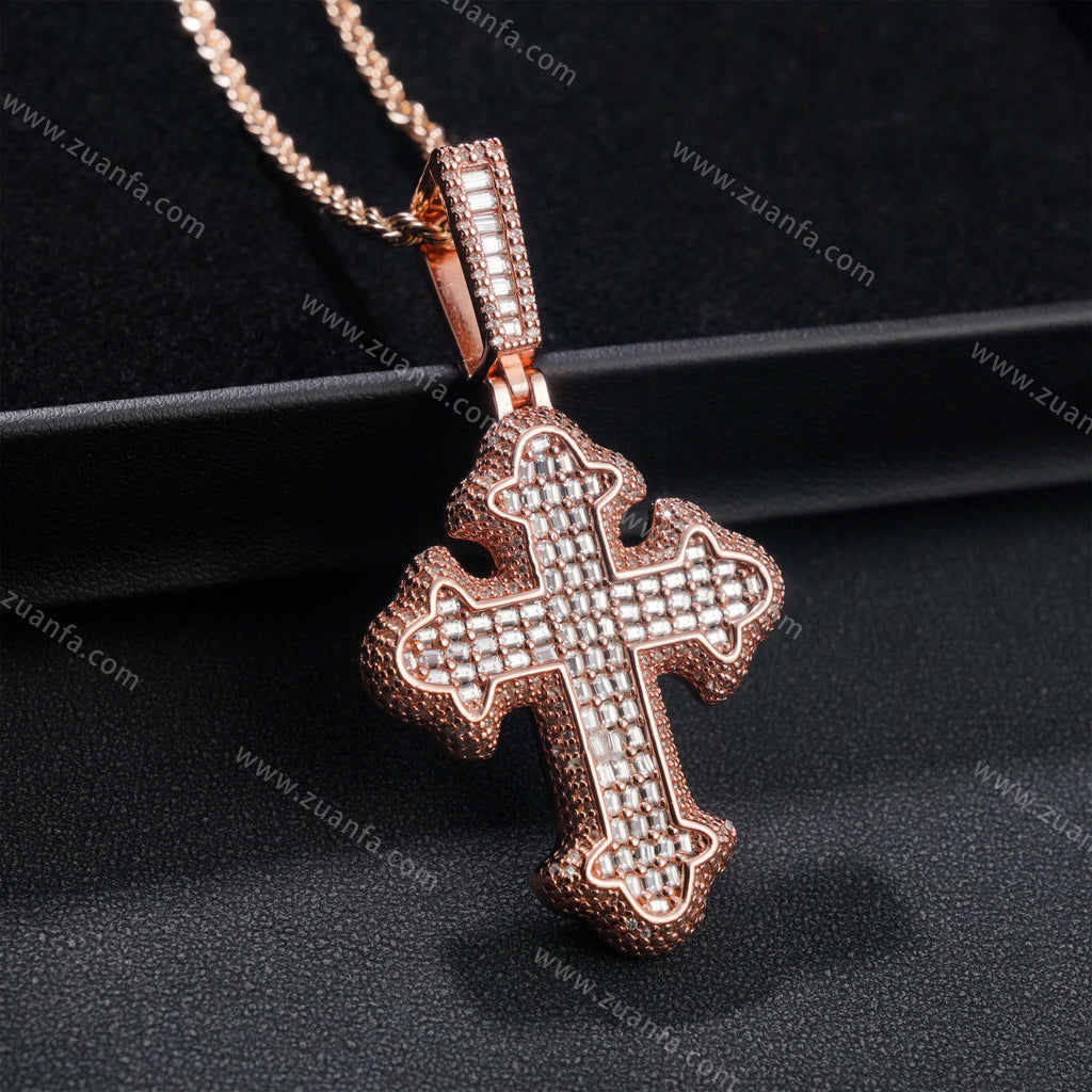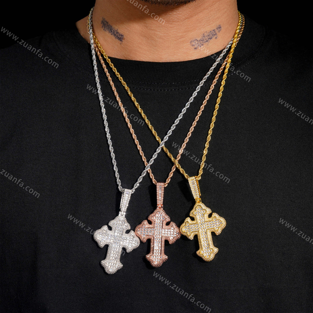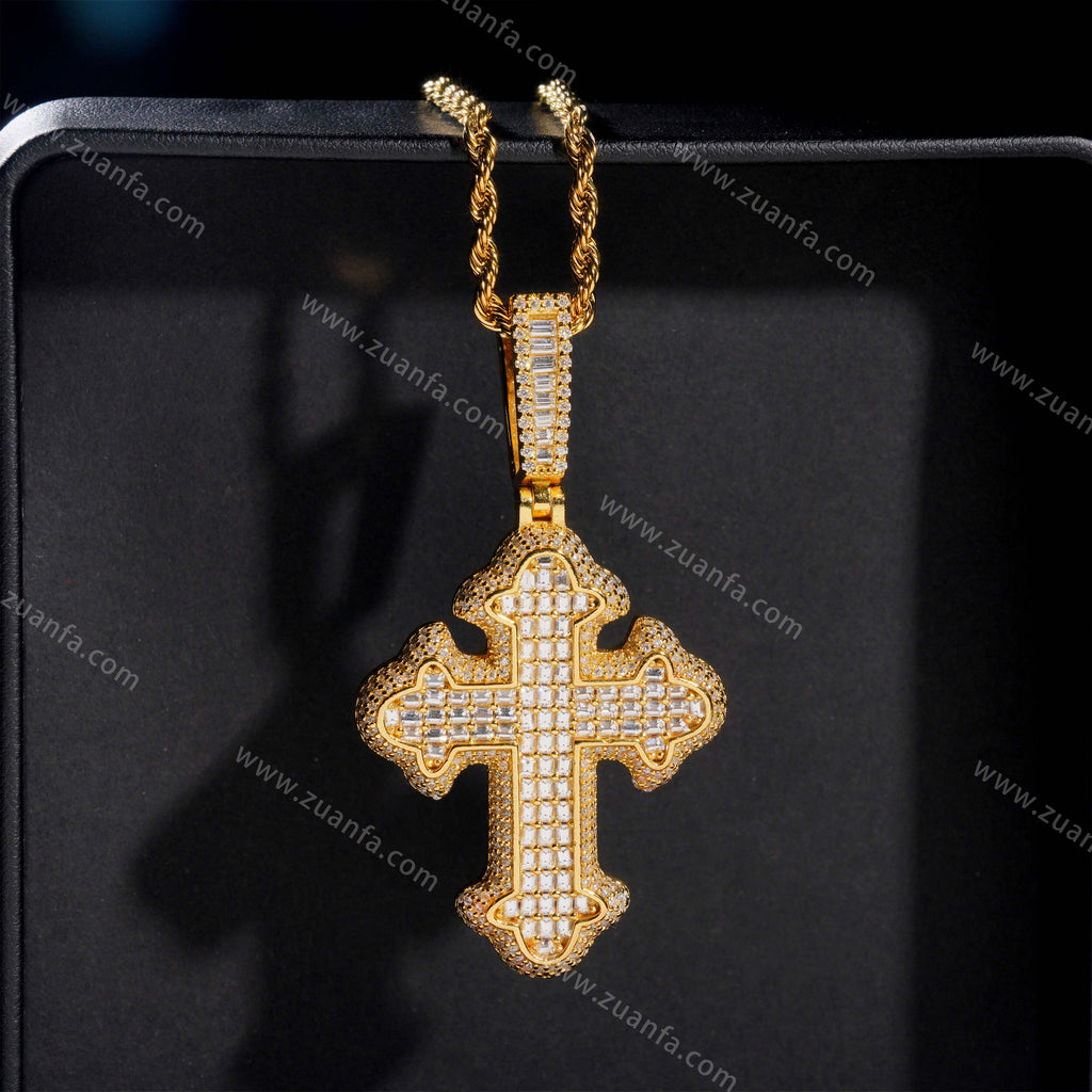 Hip Hop Iced Out Baguette Moissanite Cross Pendant