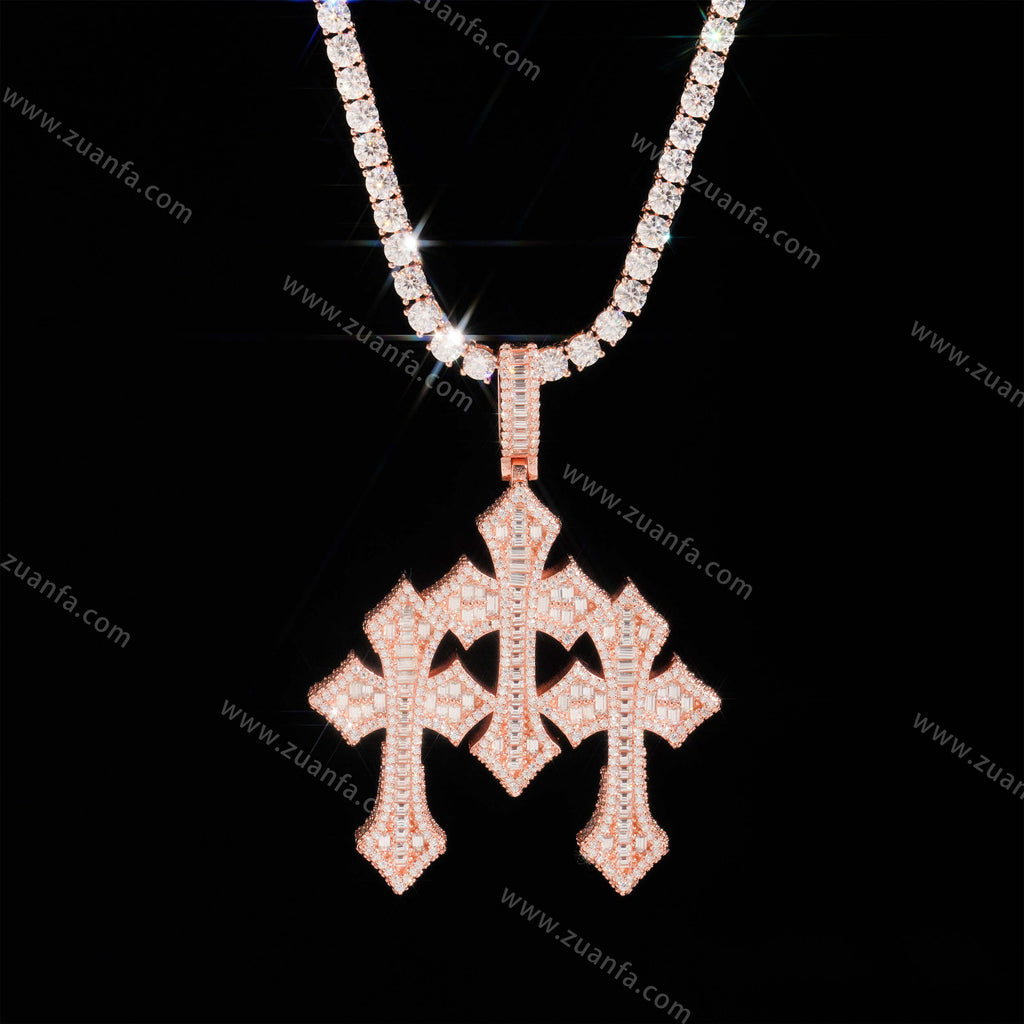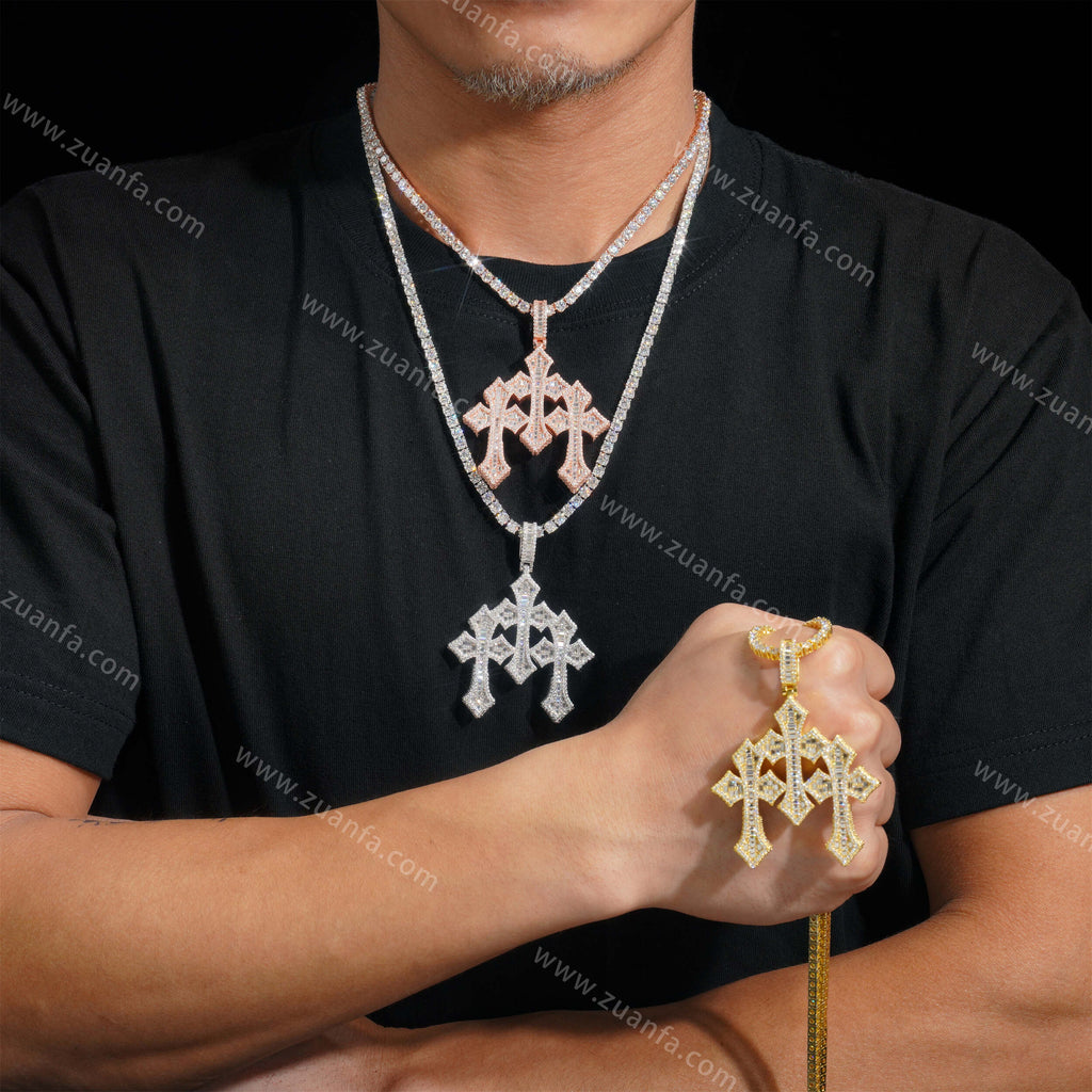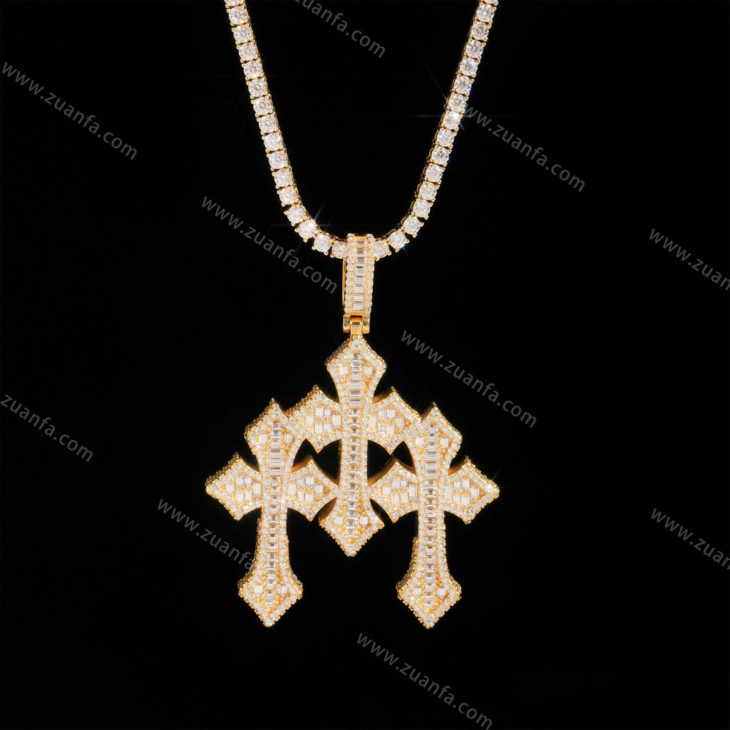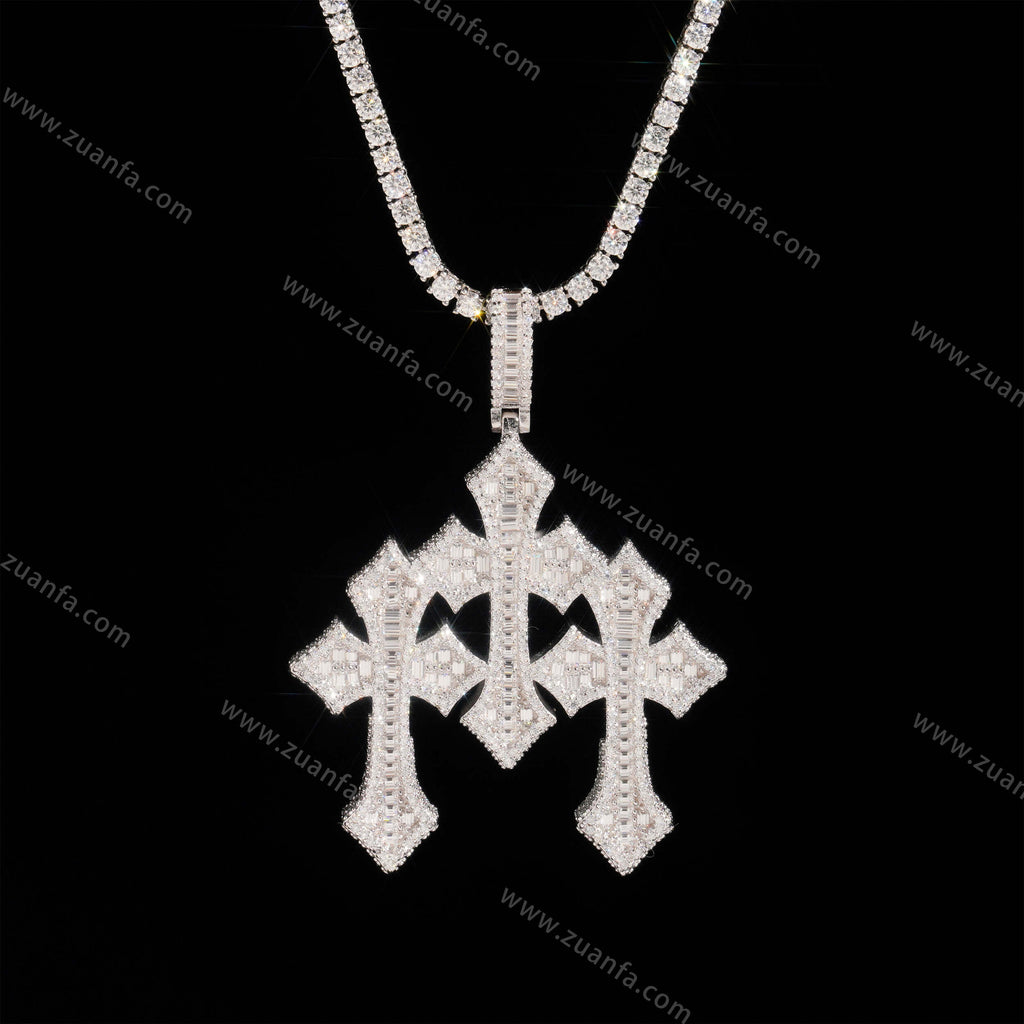 Hip Hop Three Cross Baguette Moissanite Pendant