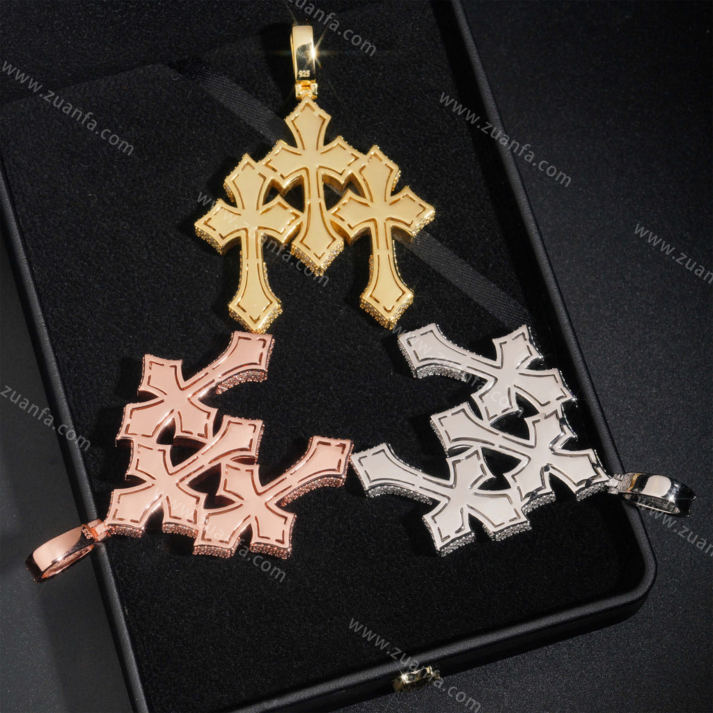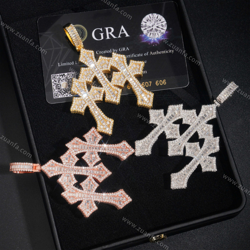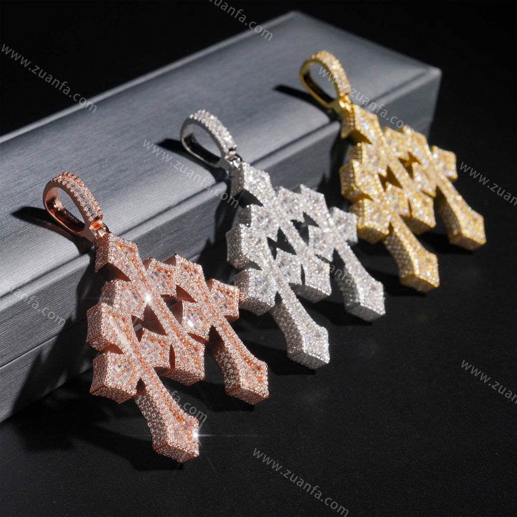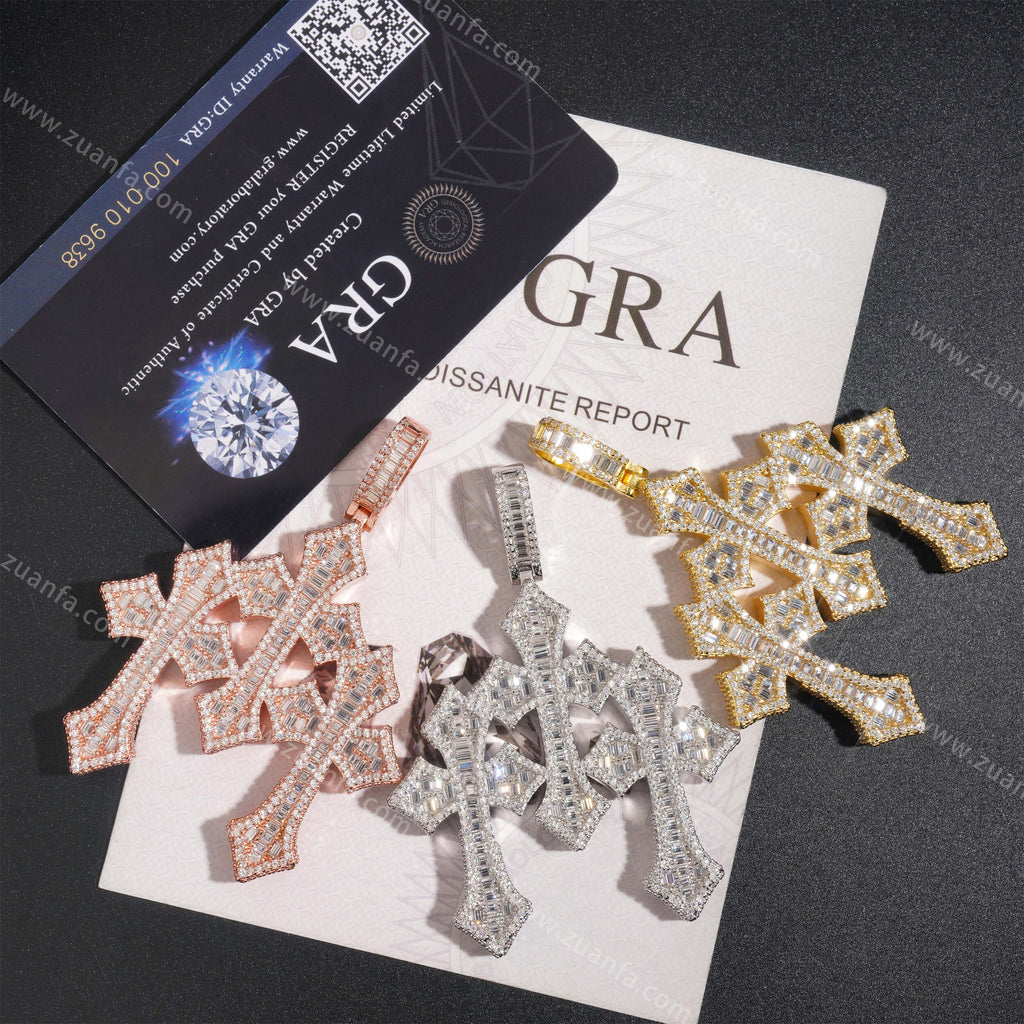 Hip Hop Three Cross Baguette Moissanite Pendant