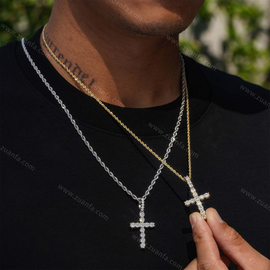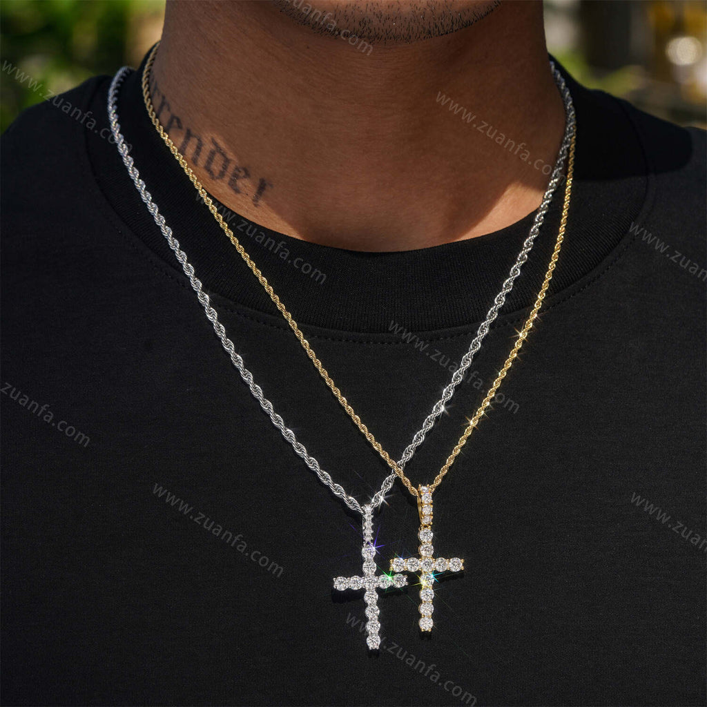Hot Sale Iced Out 4MM Moissanite Cross Pendant 18k Gold