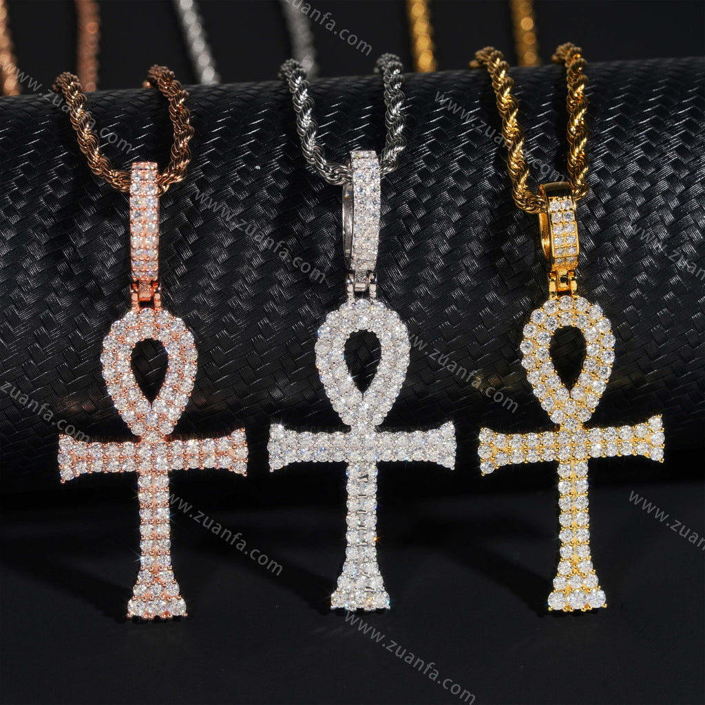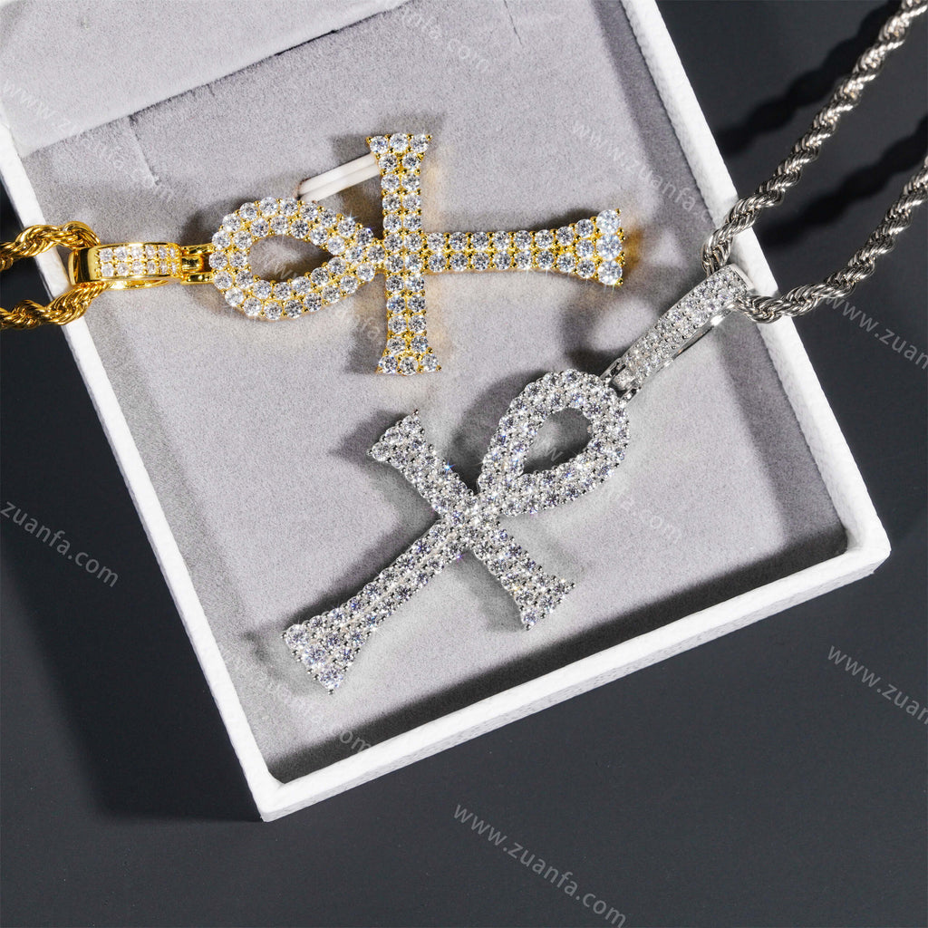 This moissanite Pendant is iced out with round cut, colorless (D-Color), VVS moissanite flawless diamonds. All of the diamonds on this moissanite pendant are guaranteed to pass the diamond tester.