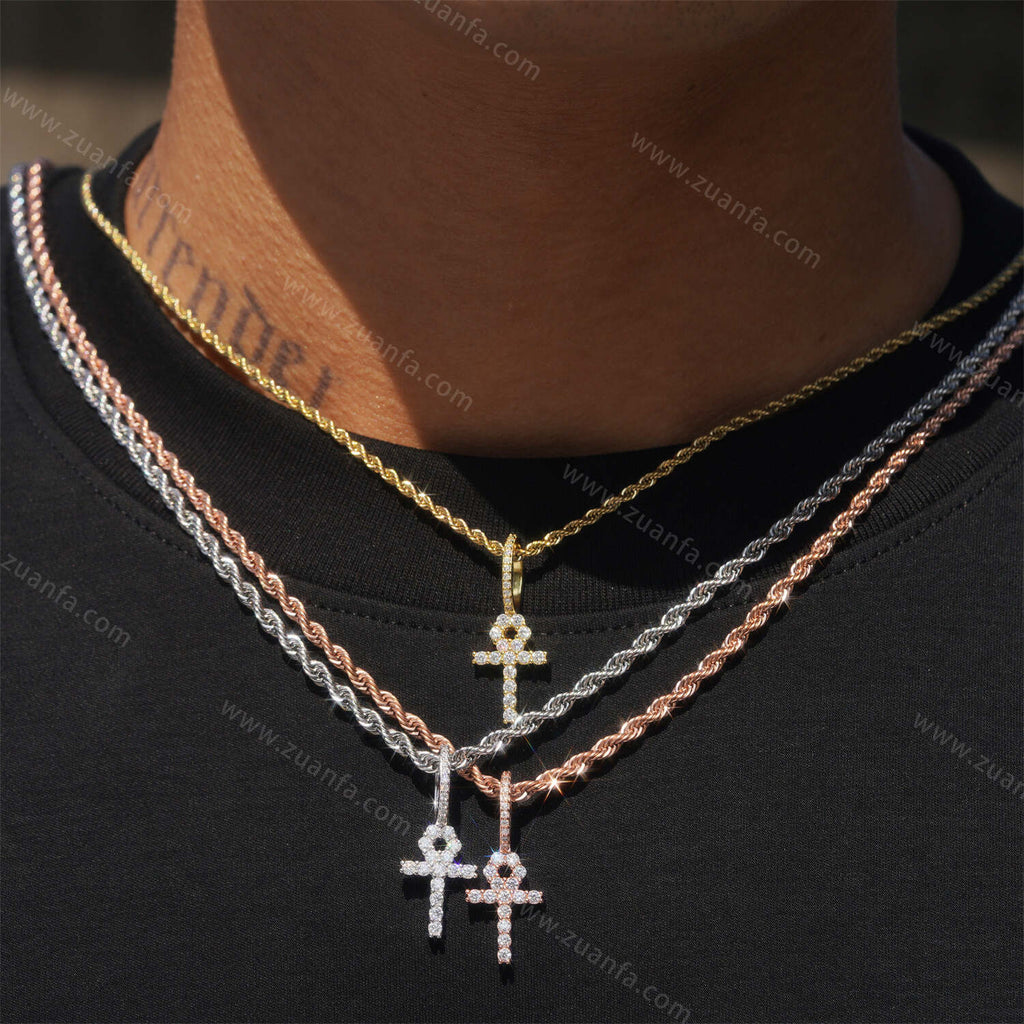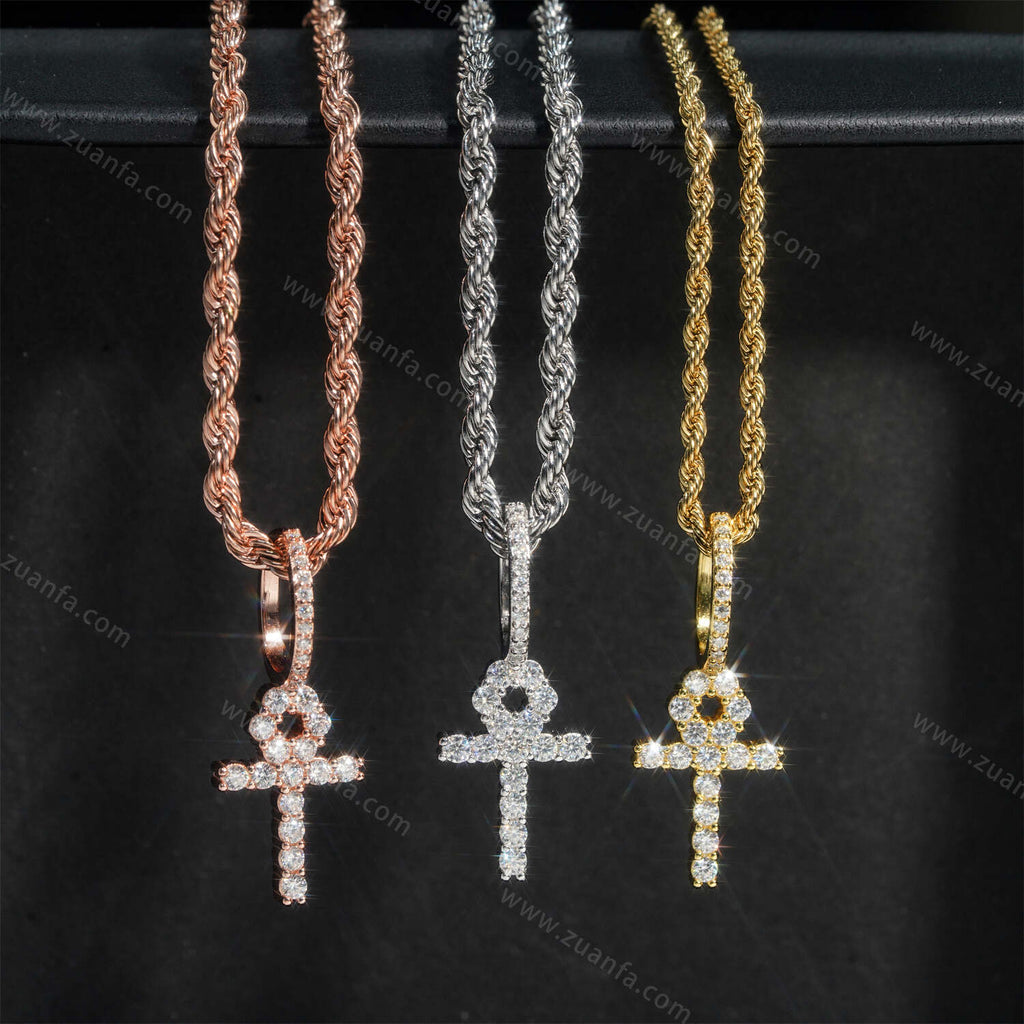 This moissanite Pendant is iced out with round cut, colorless (D-Color), VVS moissanite flawless diamonds. All of the diamonds on this moissanite pendant are guaranteed to pass the diamond tester.