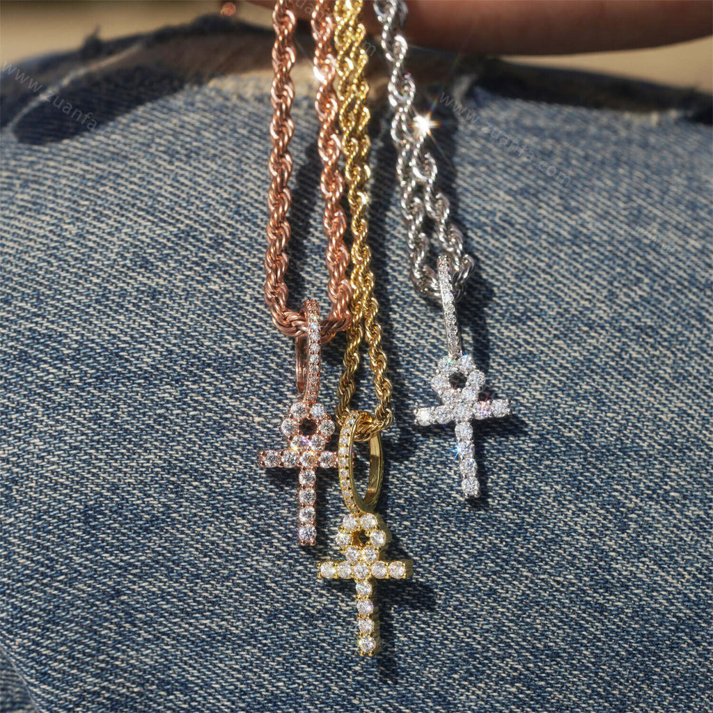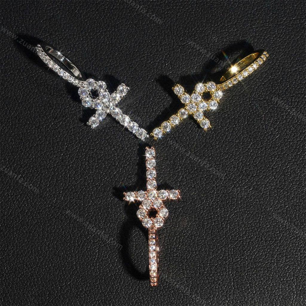 Iced Out 2.0MM Moissanite Cross Pendant 18k Gold
