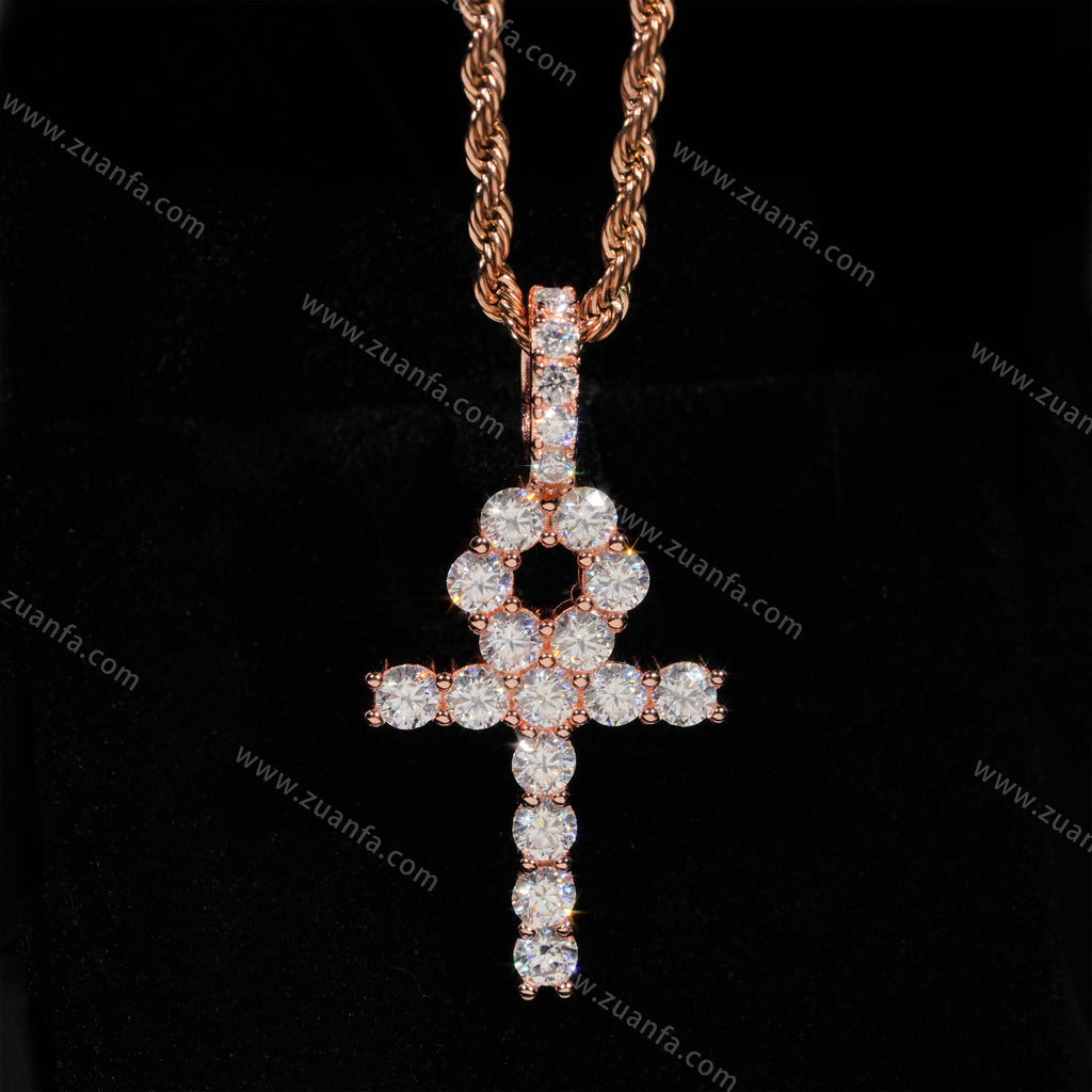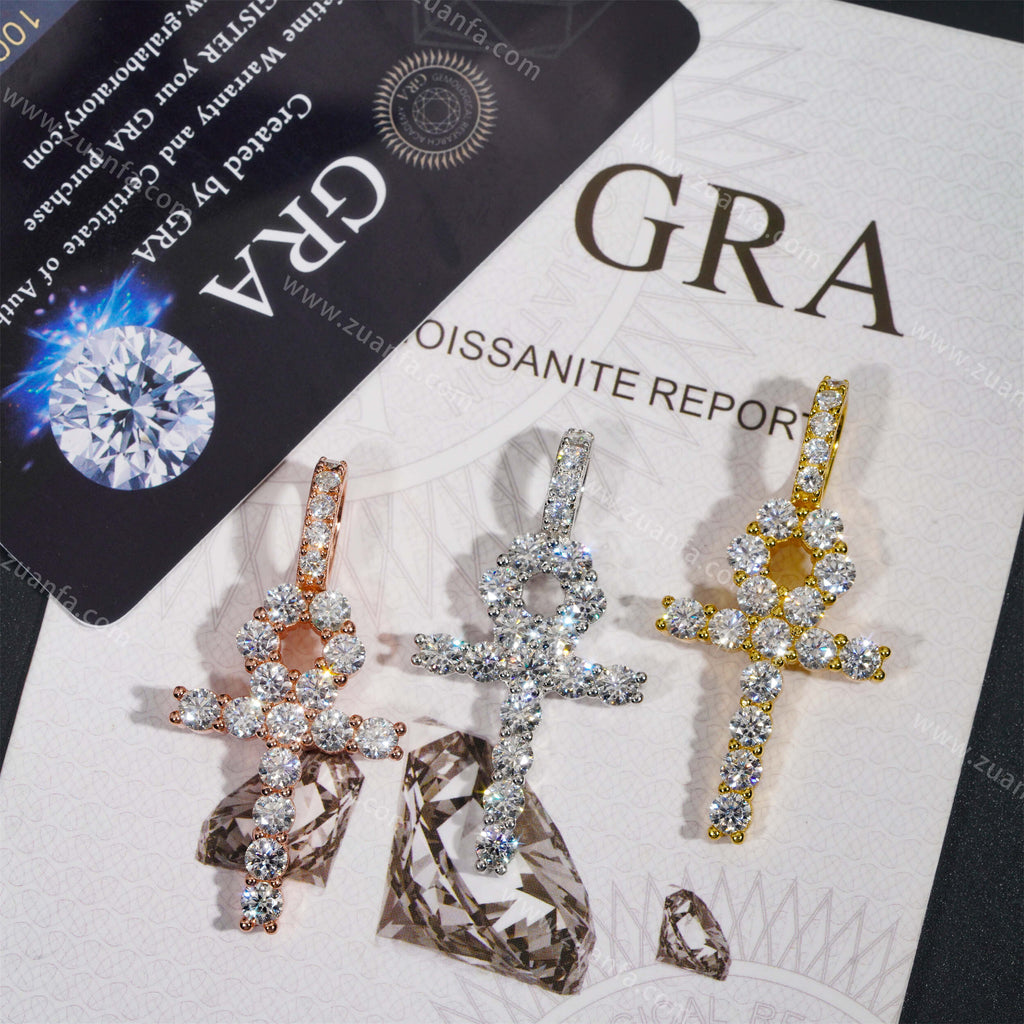 This moissanite Pendant is iced out with round cut, colorless (D-Color), VVS moissanite flawless diamonds. All of the diamonds on this moissanite pendant are guaranteed to pass the diamond tester.