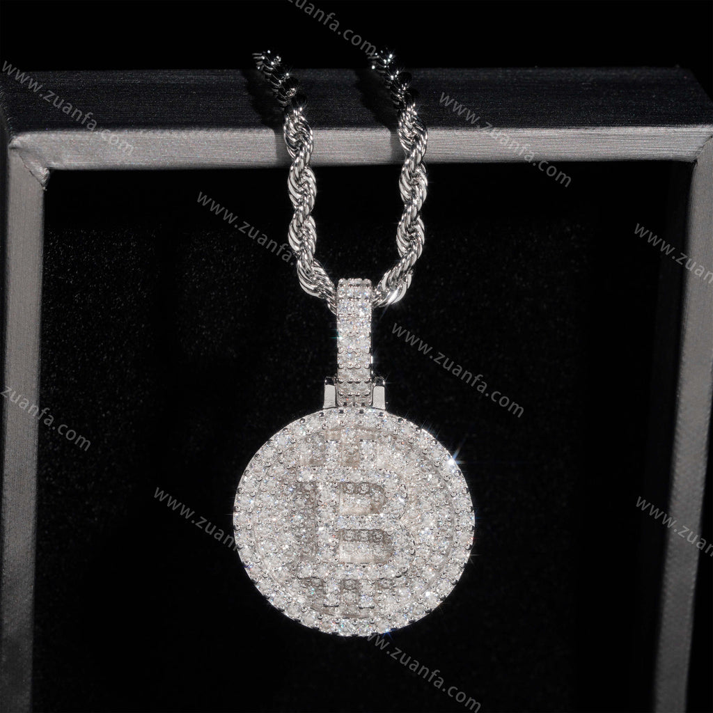 This moissanite Pendant is iced out with round cut, colorless (D-Color), VVS moissanite flawless diamonds. All of the diamonds on this moissanite pendant are guaranteed to pass the diamond tester.
