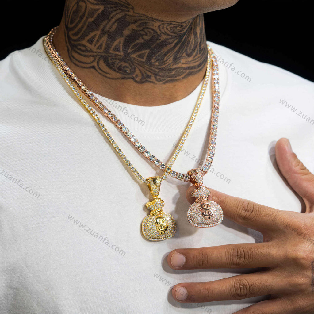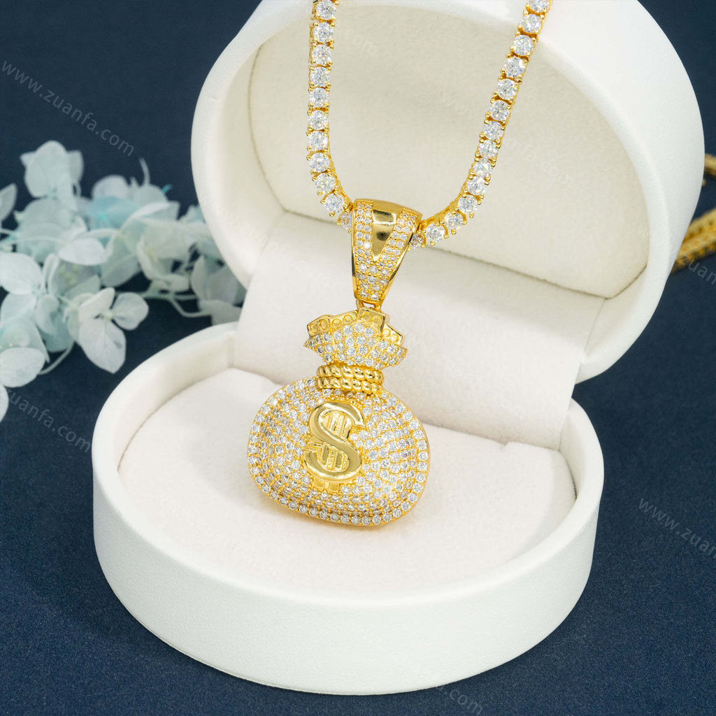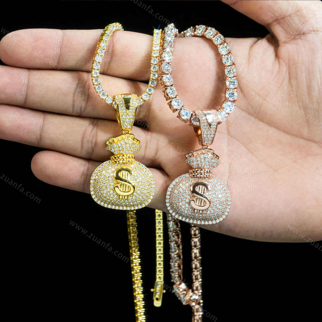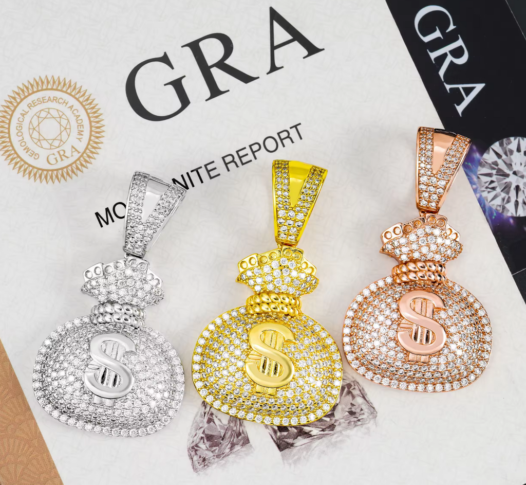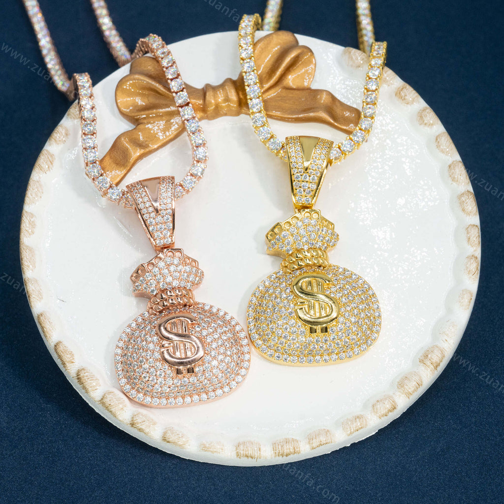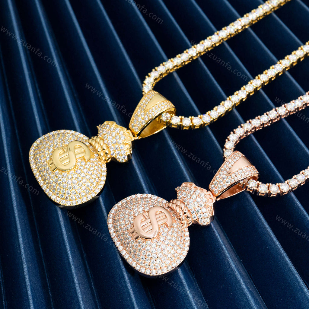 Top Quality Money Bag Moissanite Pendant 18k Gold