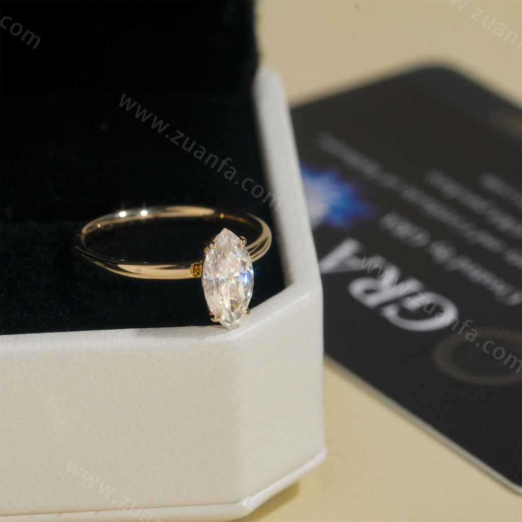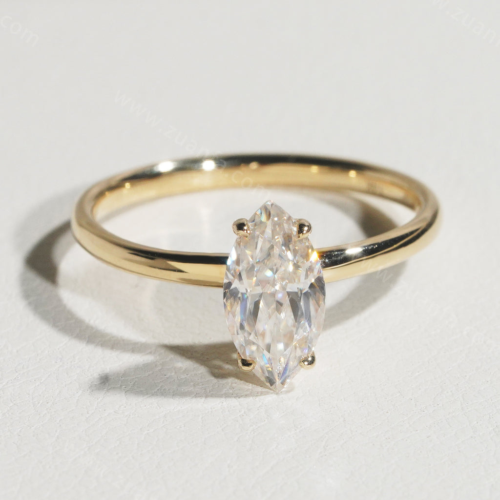 Marquise Cut 1ct Moissanite Engagement Ring 14k Solid Gold