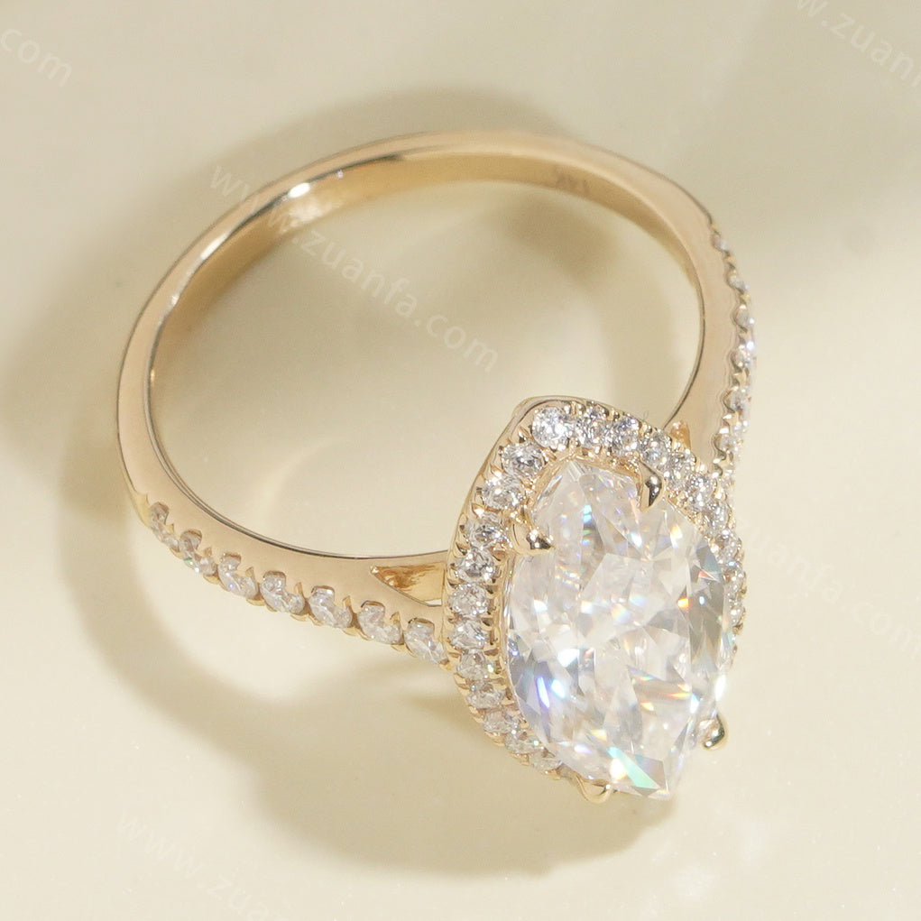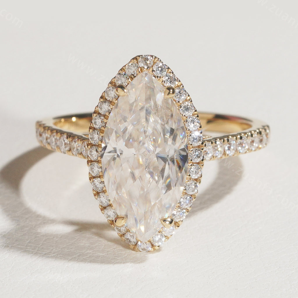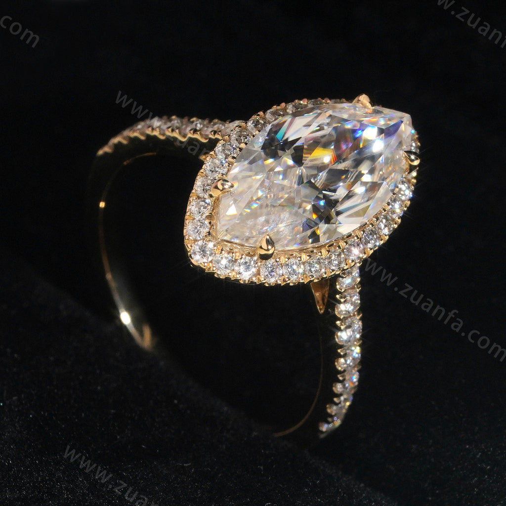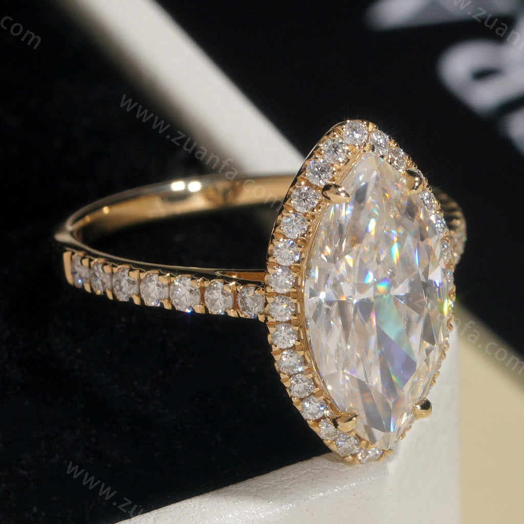 Marquise Cut 3ct Moissanite Engagement Ring 14k Solid Gold