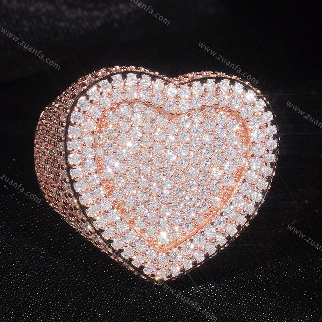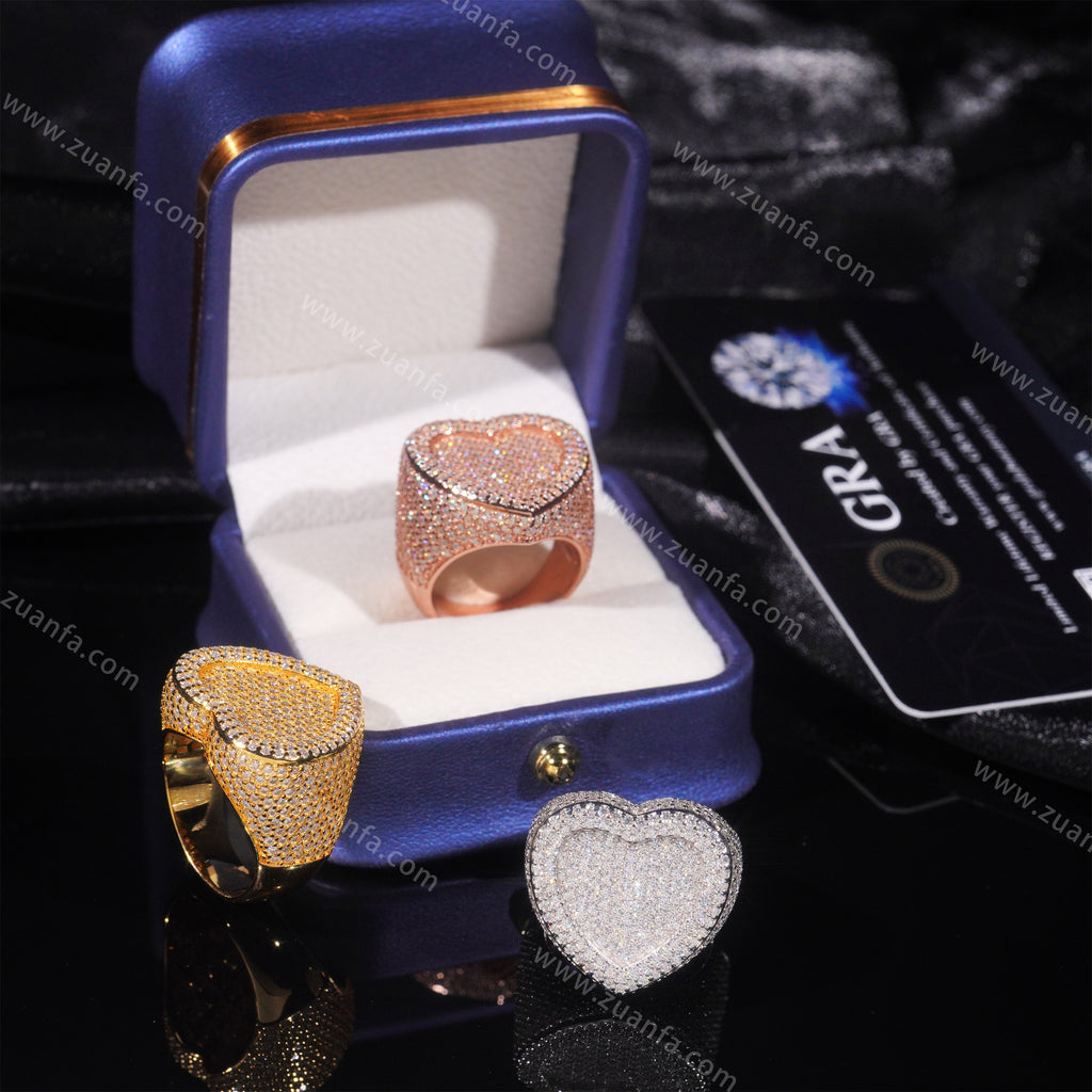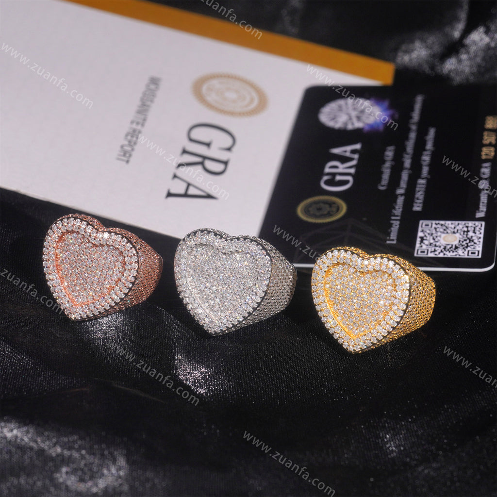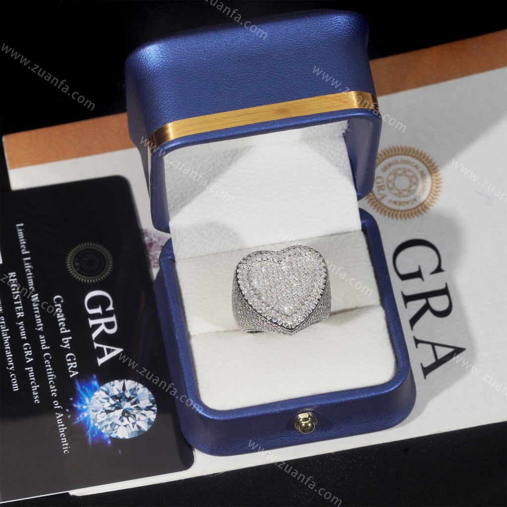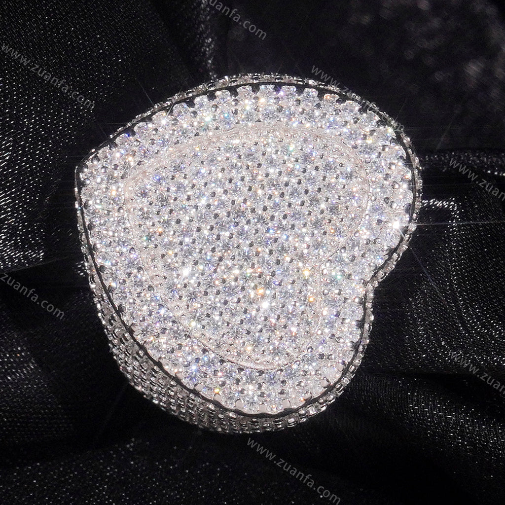 This moissanite ring is iced out with Round cut, colorless (D-Color), VVS moissanite flawless diamonds. All of the diamonds on this moissanite ring are guaranteed to pass the diamond tester.