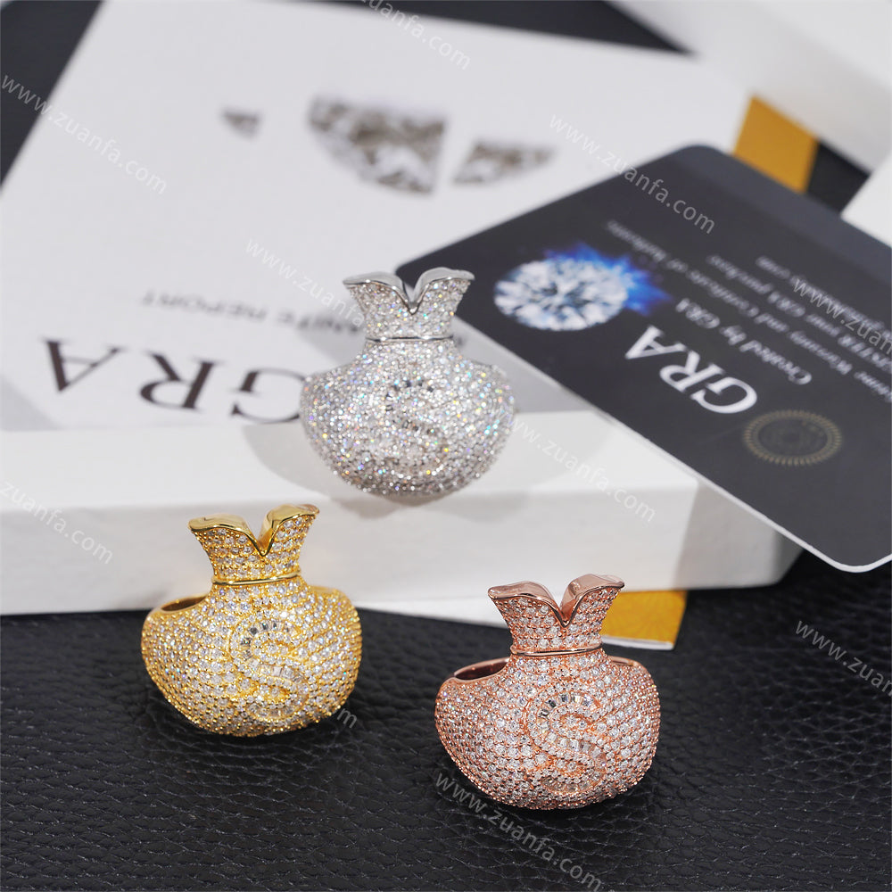 Money Bag Hip Hop Moissanite Ring