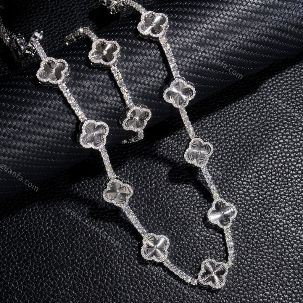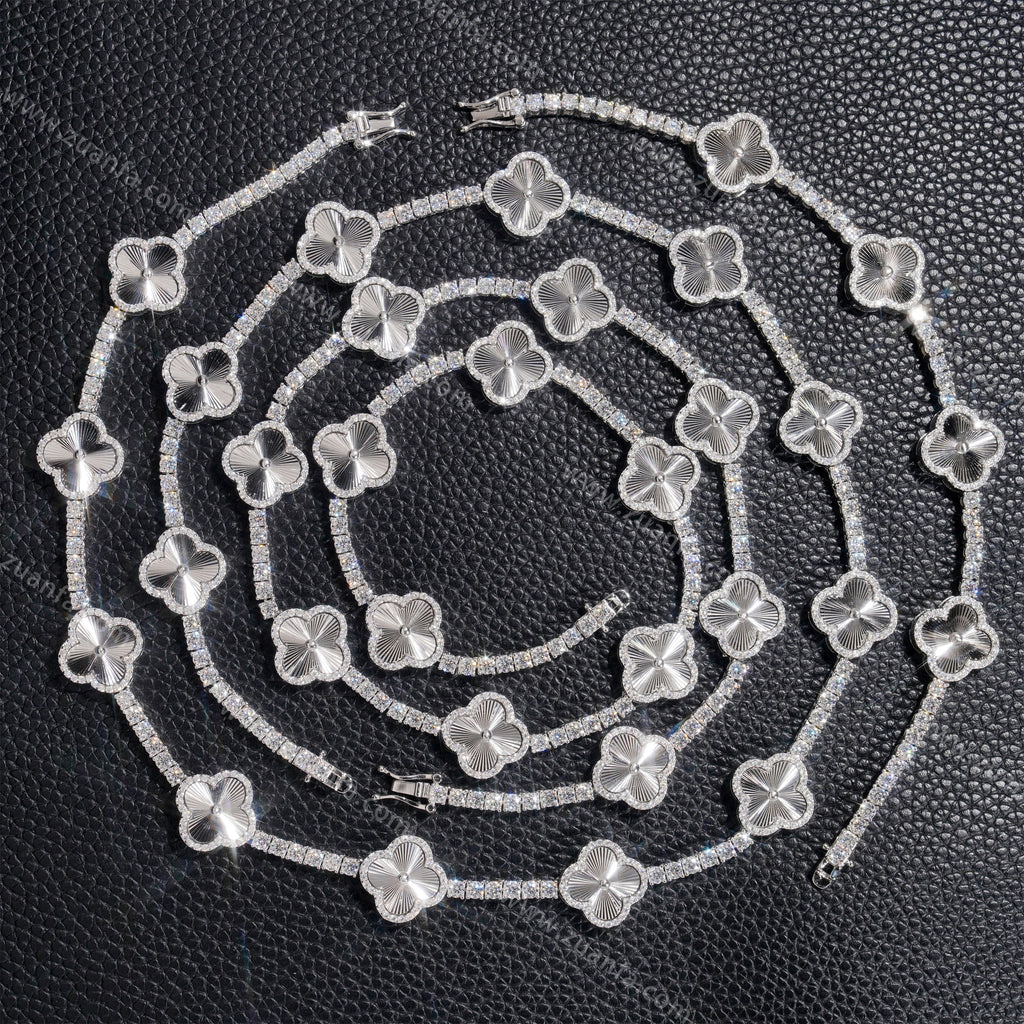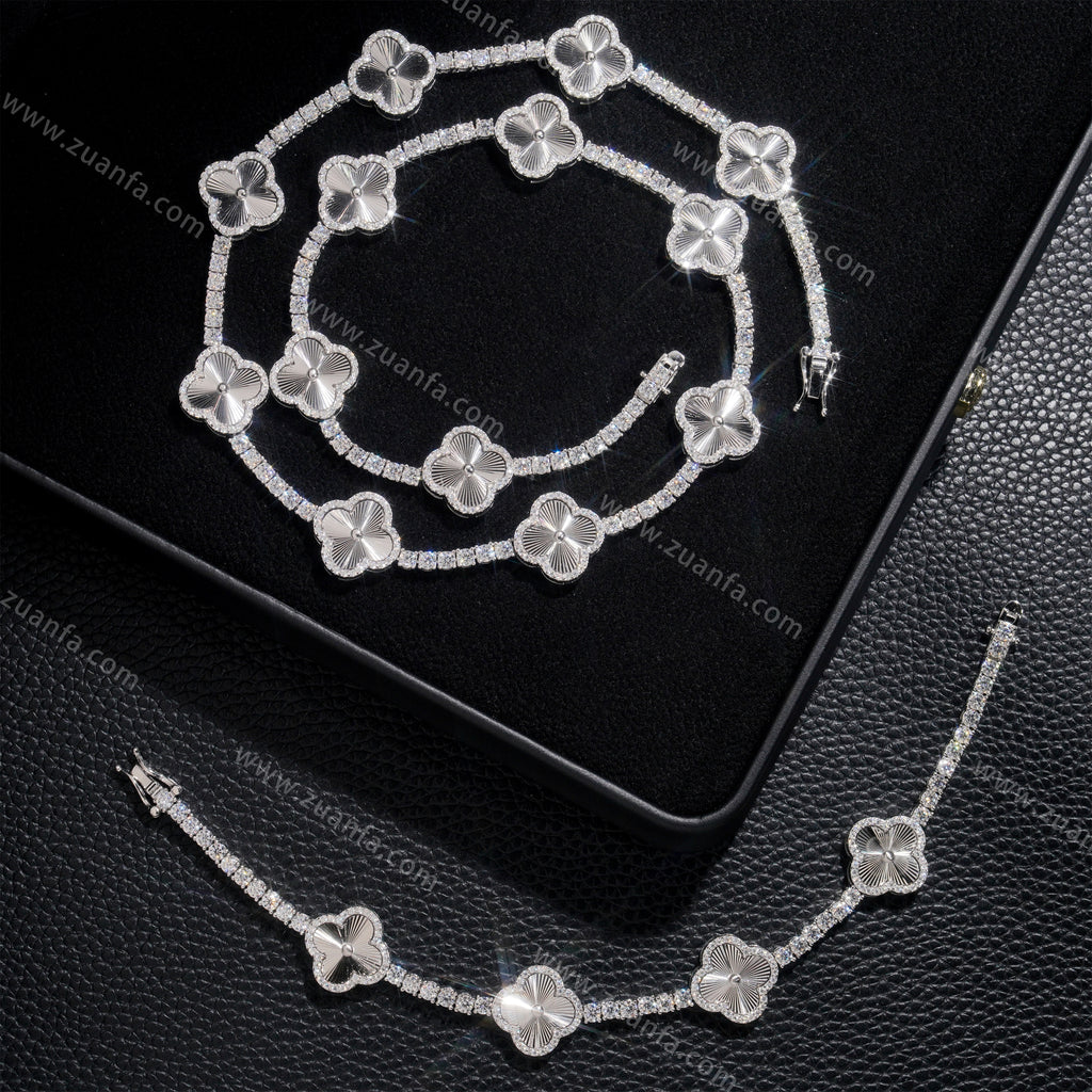 This Zuanfa exclusive Moissanite Clover Tennis Chain is made from 925 sterling silver and plated with a thick layer of 18K Gold.