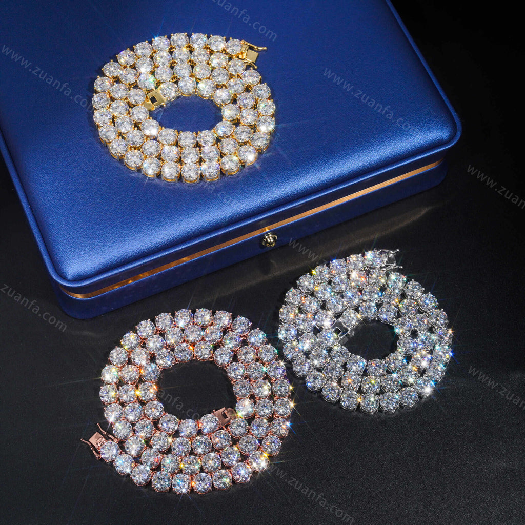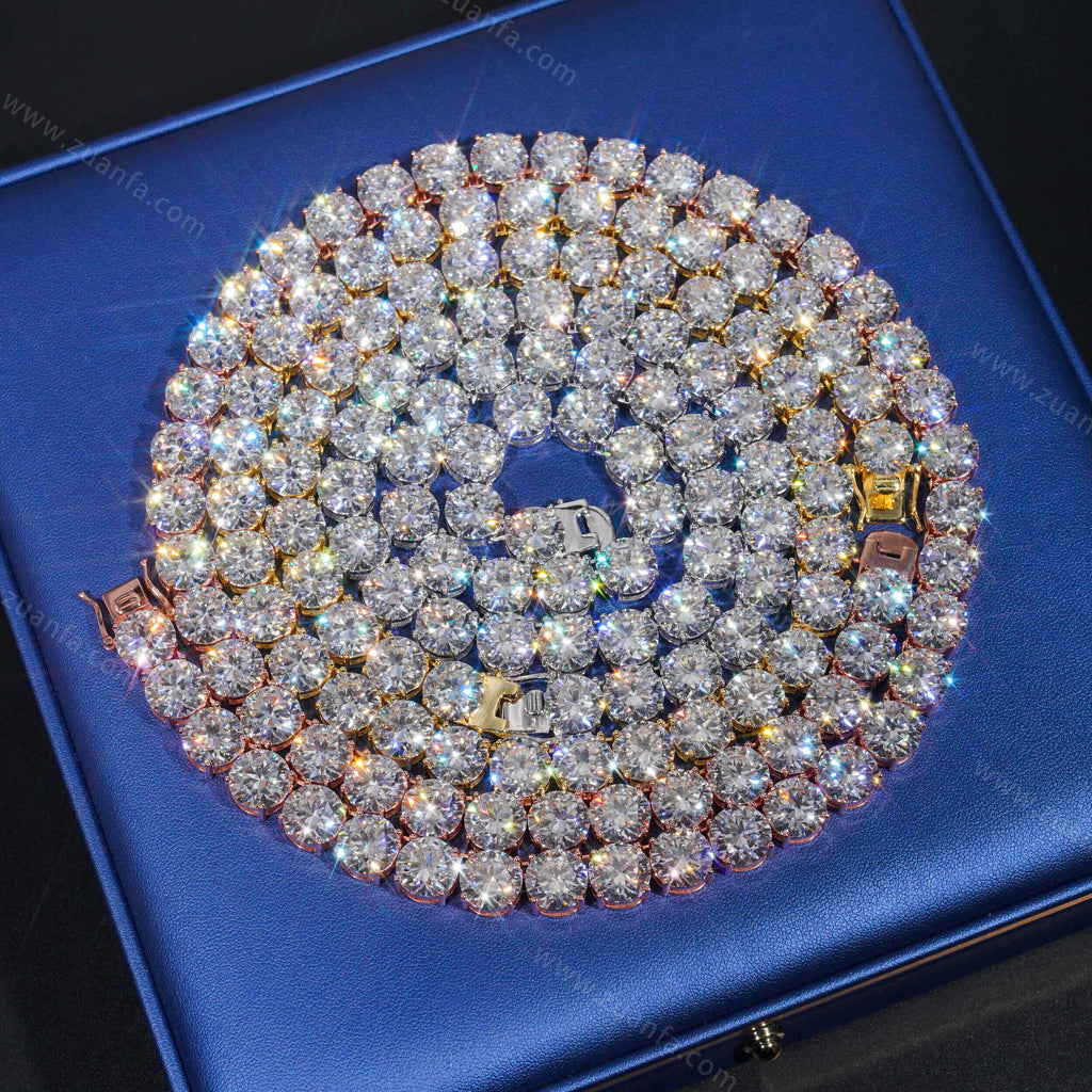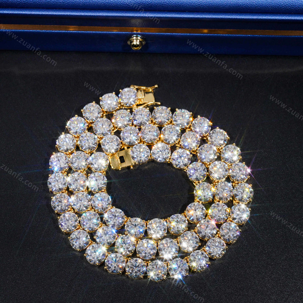 This Zuanfa exclusive 6.5MM Moissanite Tennis Chain is made from 925 sterling silver and plated with a thick layer of 18K Gold.