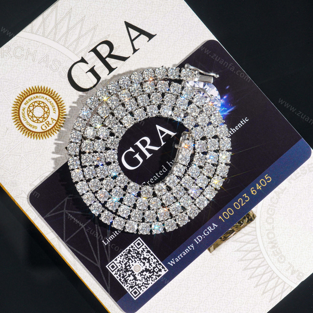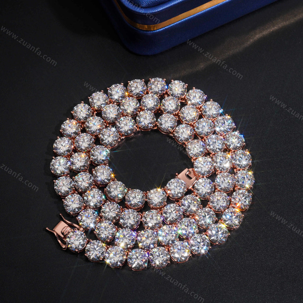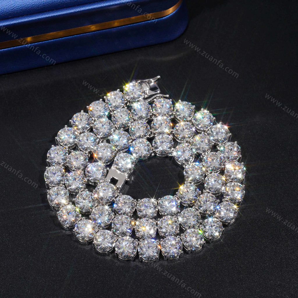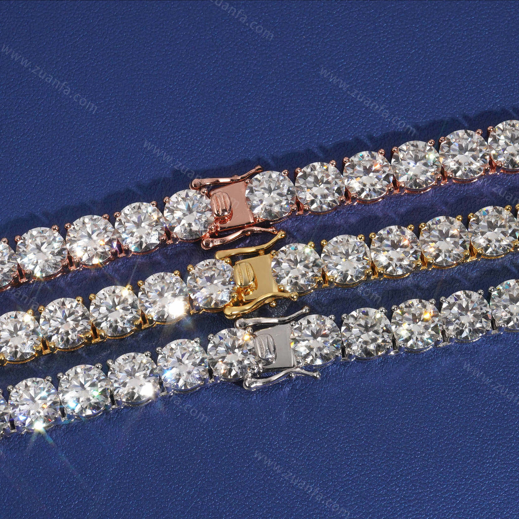 This Zuanfa exclusive 6.5MM Moissanite Tennis Chain is made from 925 sterling silver and plated with a thick layer of 18K Gold.