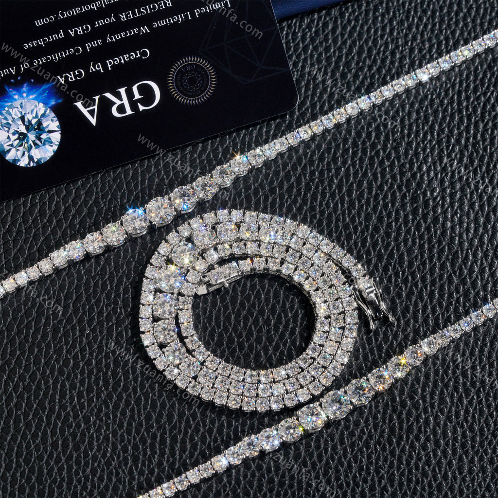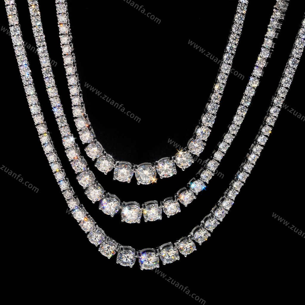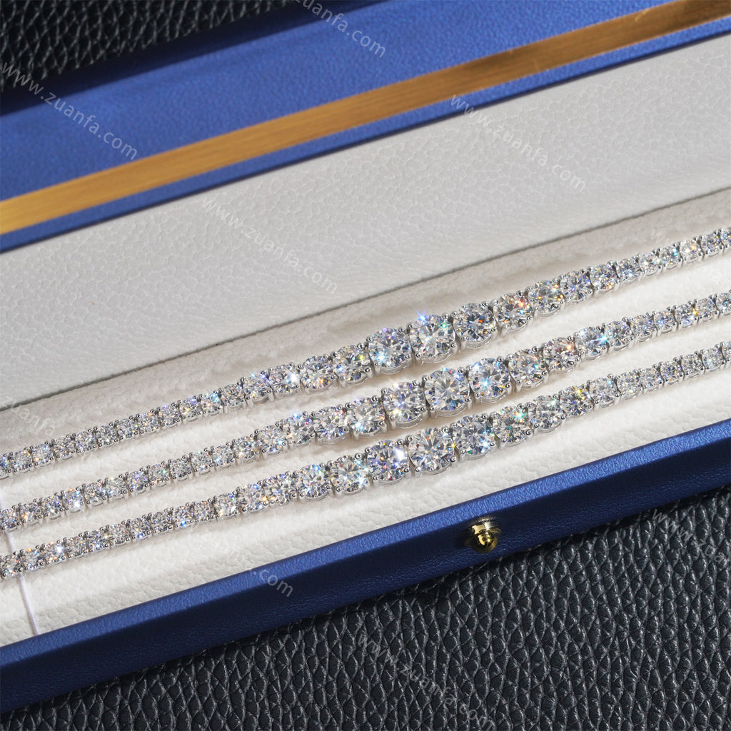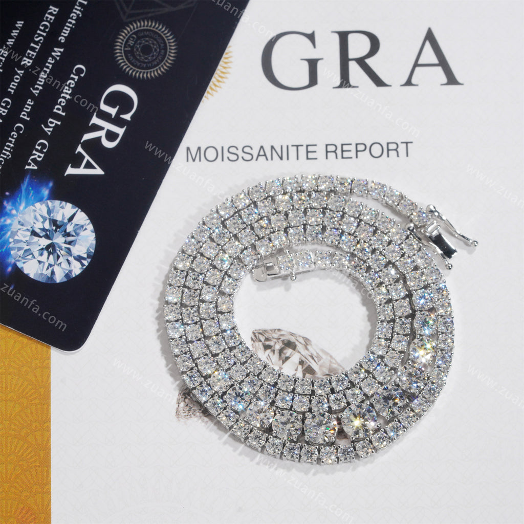 This Zuanfa exclusive Moissanite Tennis Chain is made from 925 sterling silver and plated with a thick layer of 18K Gold.