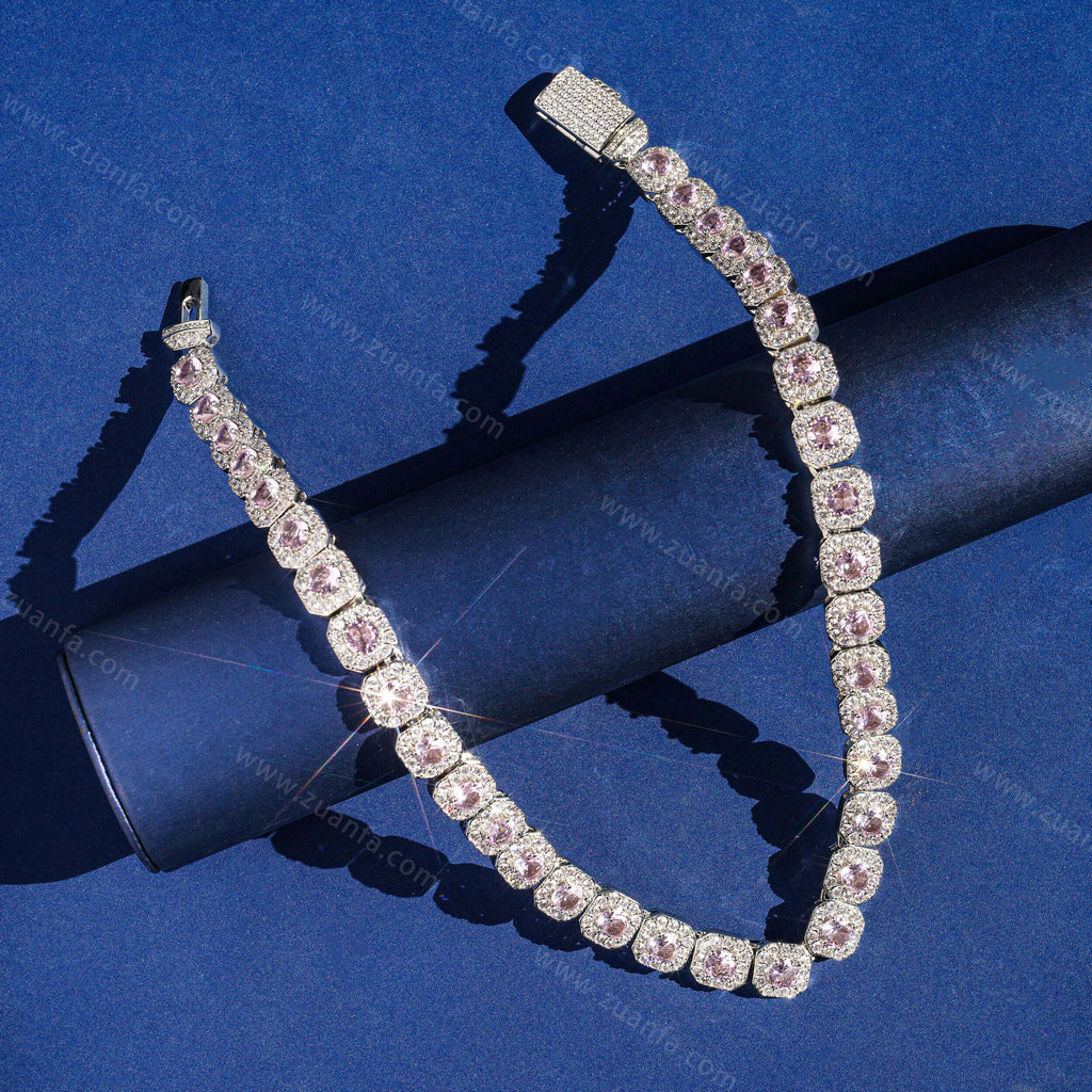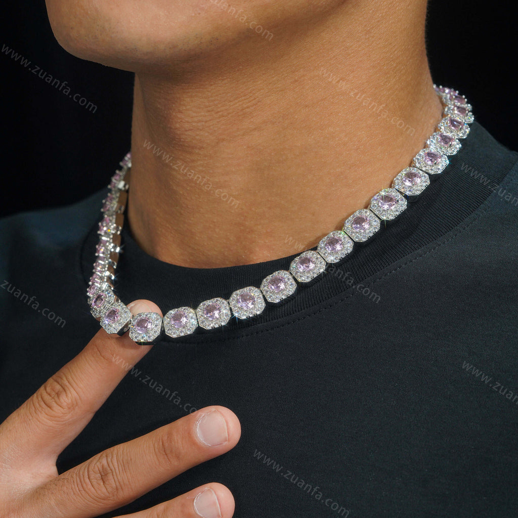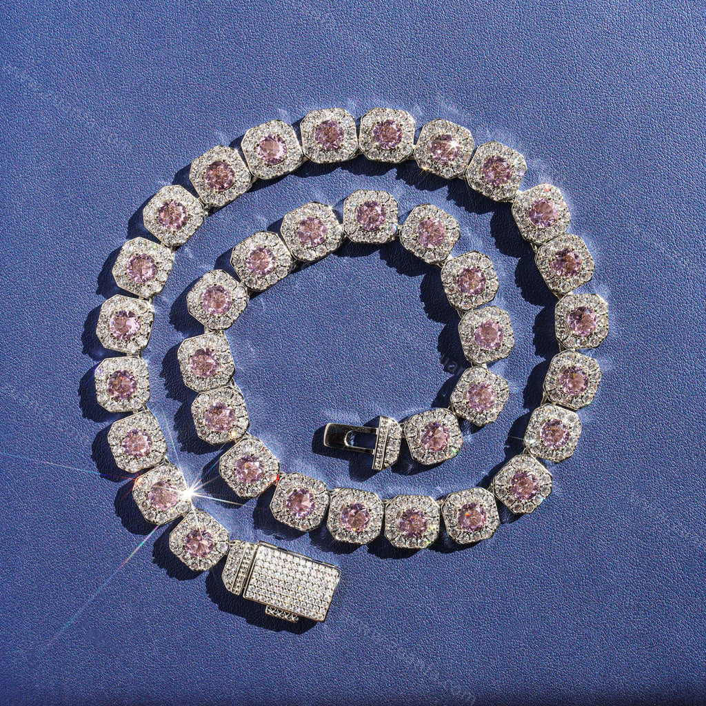 10MM Cluster Tennis Pink Diamond Cuban Link Chain