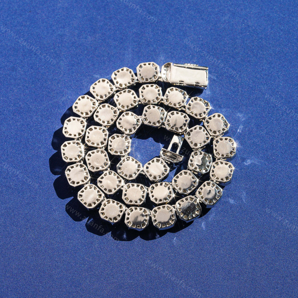Zuanfa exclusive Round Diamond Iced Out Cuban Link Chain is now available, made of Brass and plated with a thick layer of 18K Gold.