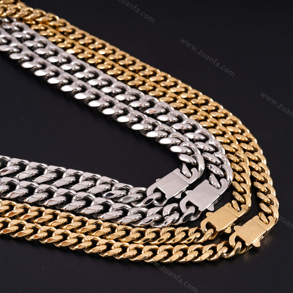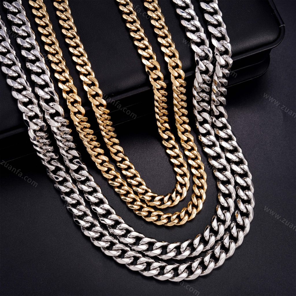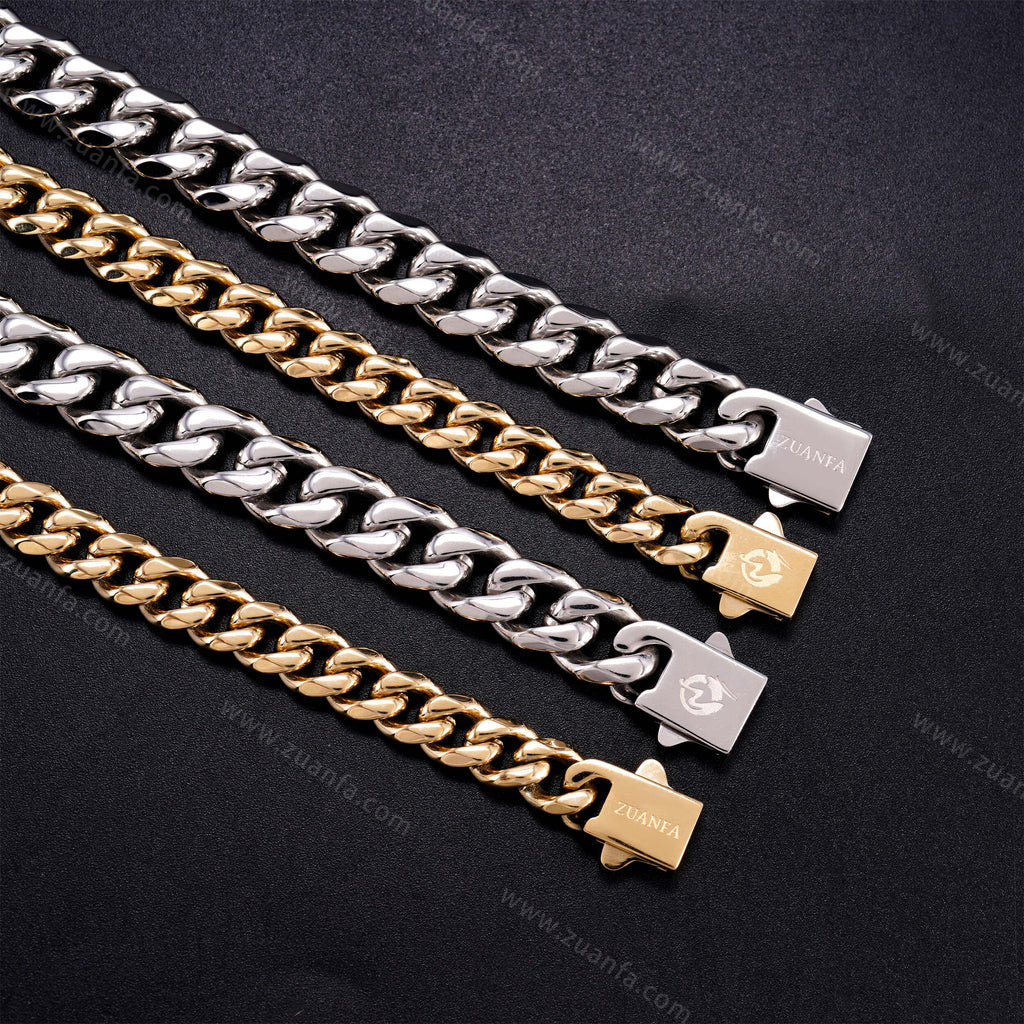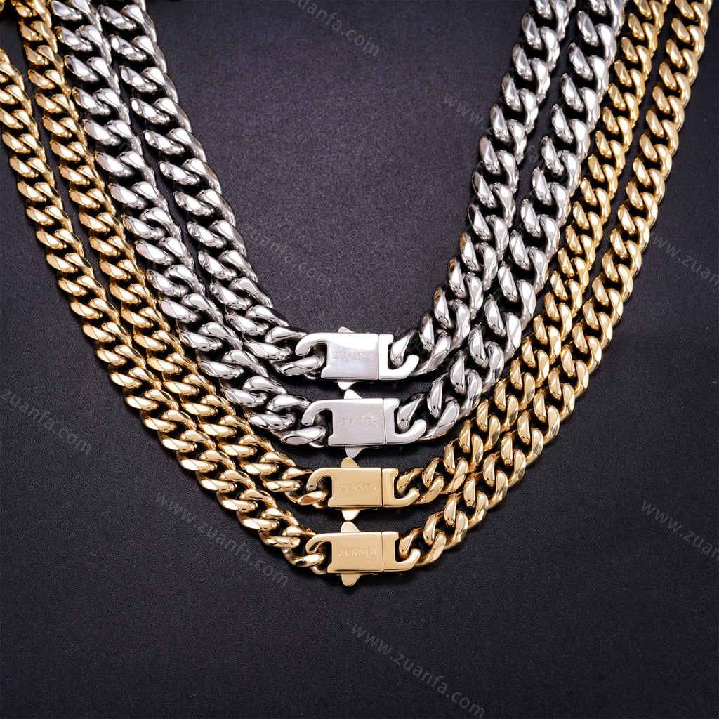 Zuanfa exclusive 10mm Cuban Link Chain is now available, made of 316L Stainless Steel and plated with a thick layer of 14K Gold.