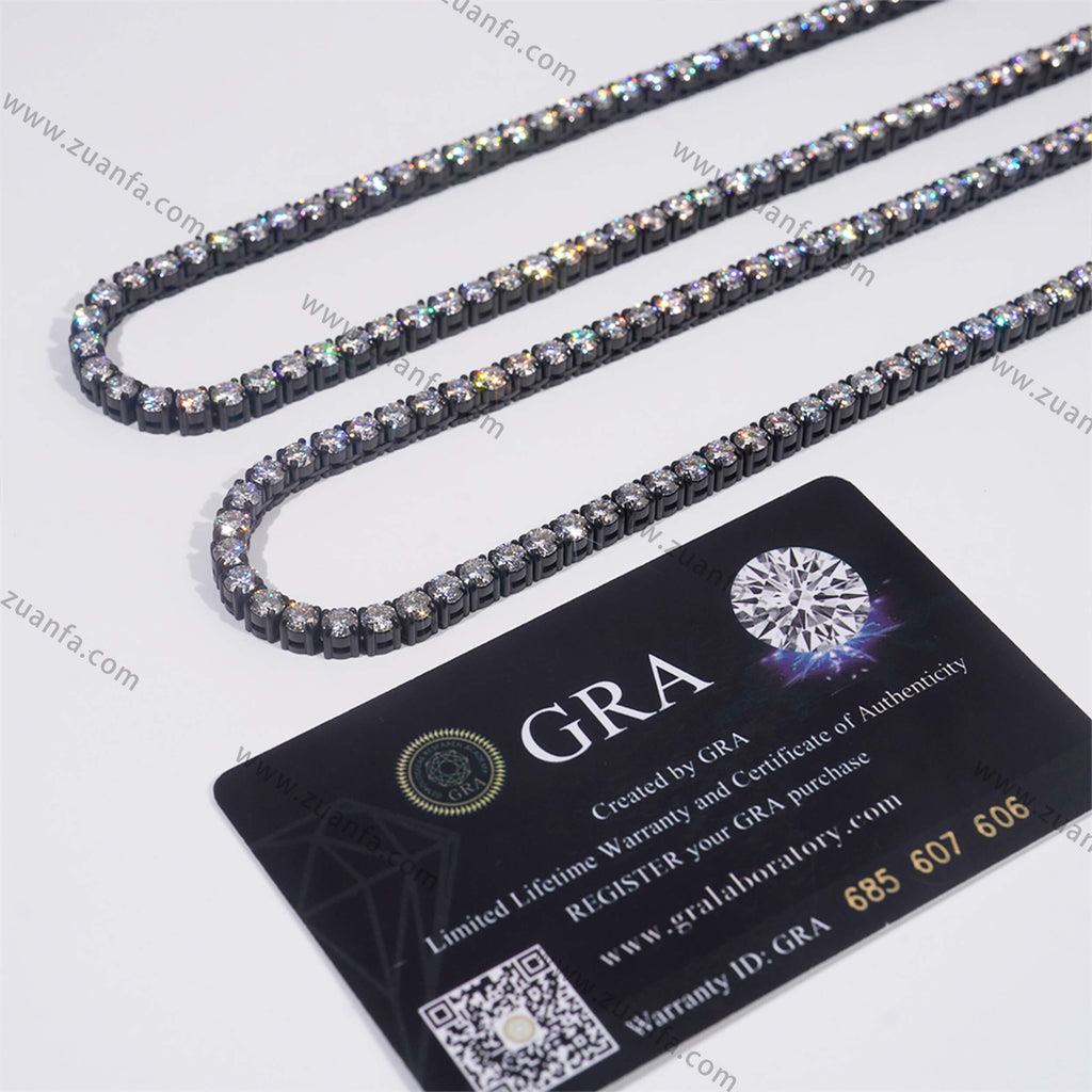 This Zuanfa exclusive 4.0MM Moissanite Tennis Chain is made from 316L Stainless Steel and PVD plated with a thick layer of 18K Gold.