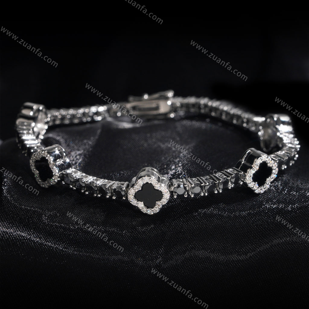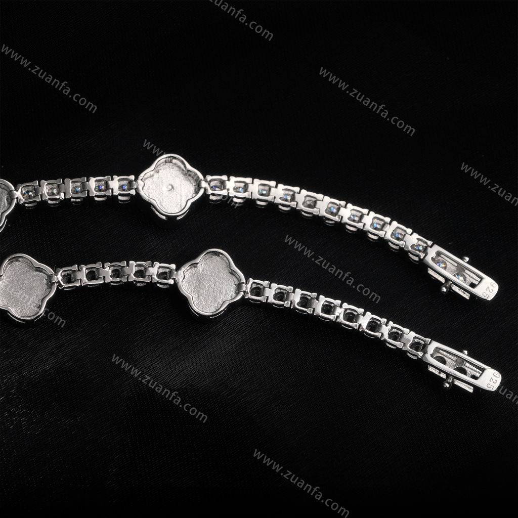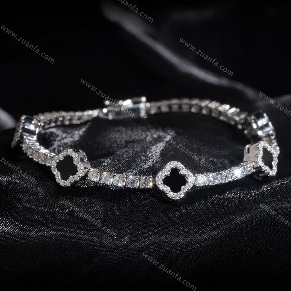 This Zuanfa exclusive Moissanite Clover Tennis Bracelet is made from 925 sterling silver and plated with a thick layer of 18K Gold.