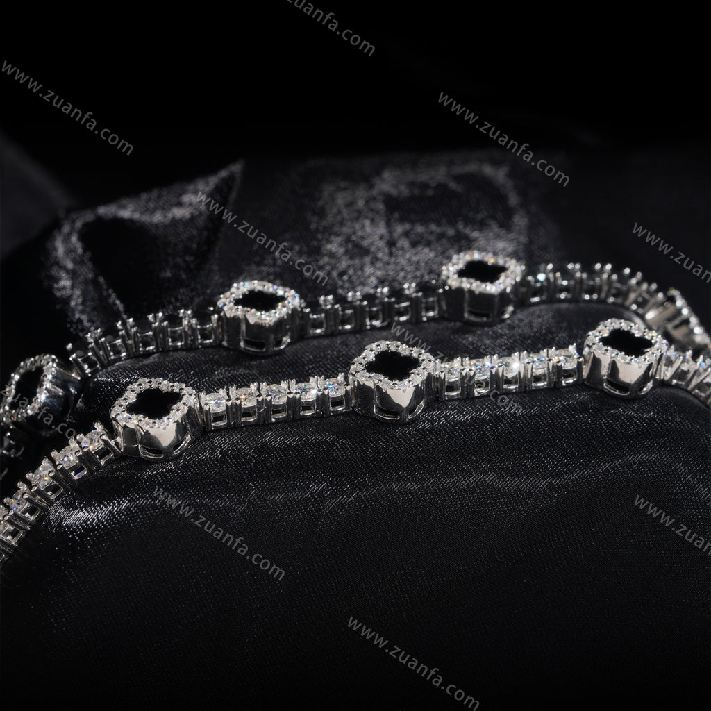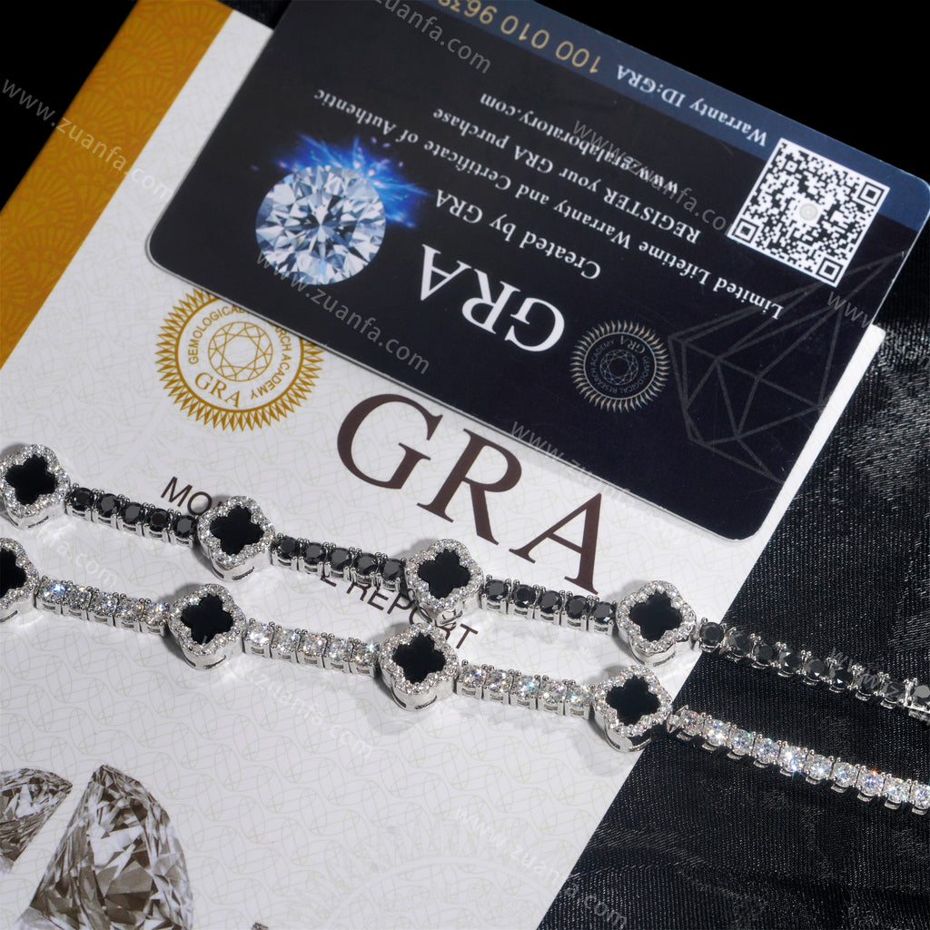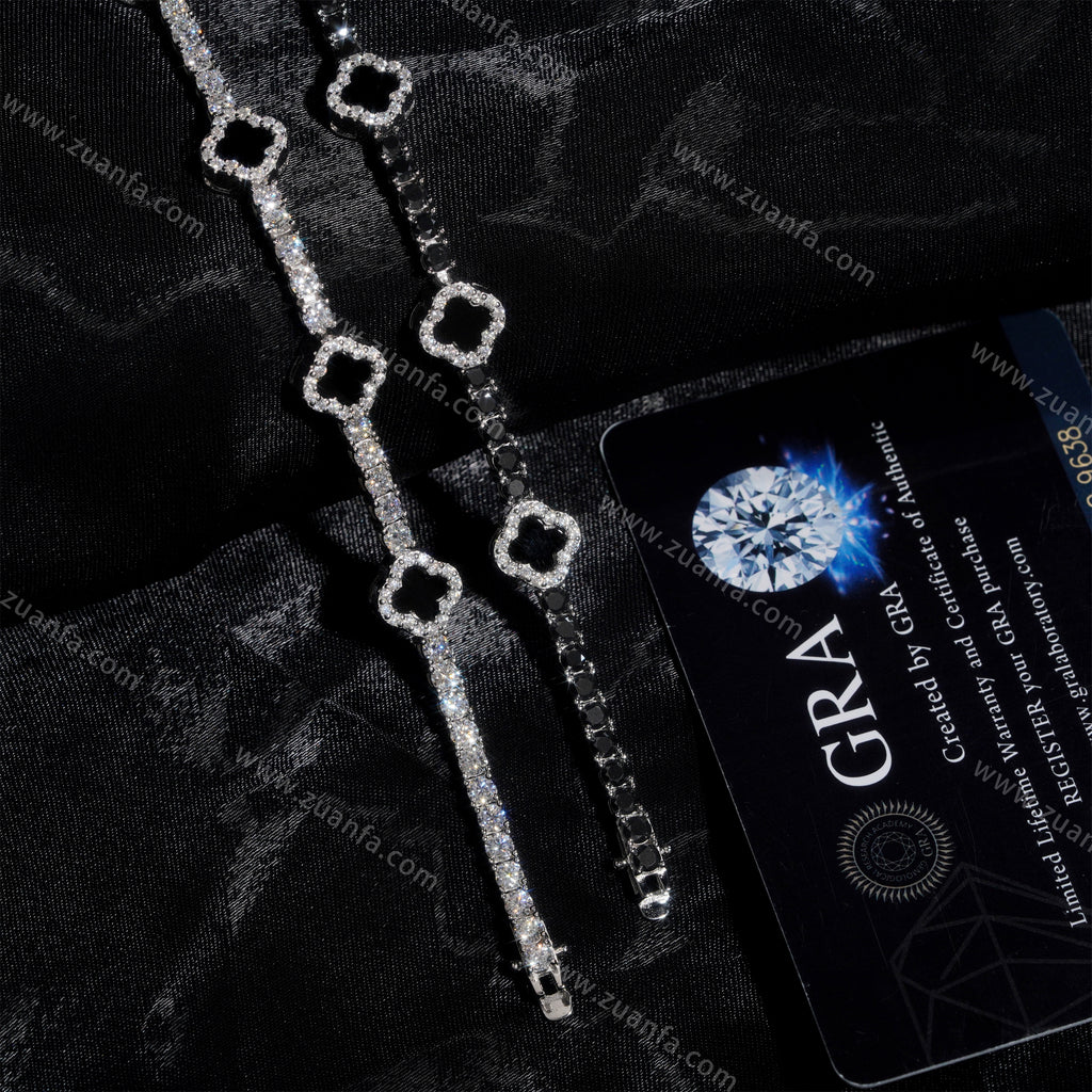 This Zuanfa exclusive Moissanite Clover Tennis Bracelet is made from 925 sterling silver and plated with a thick layer of 18K Gold.