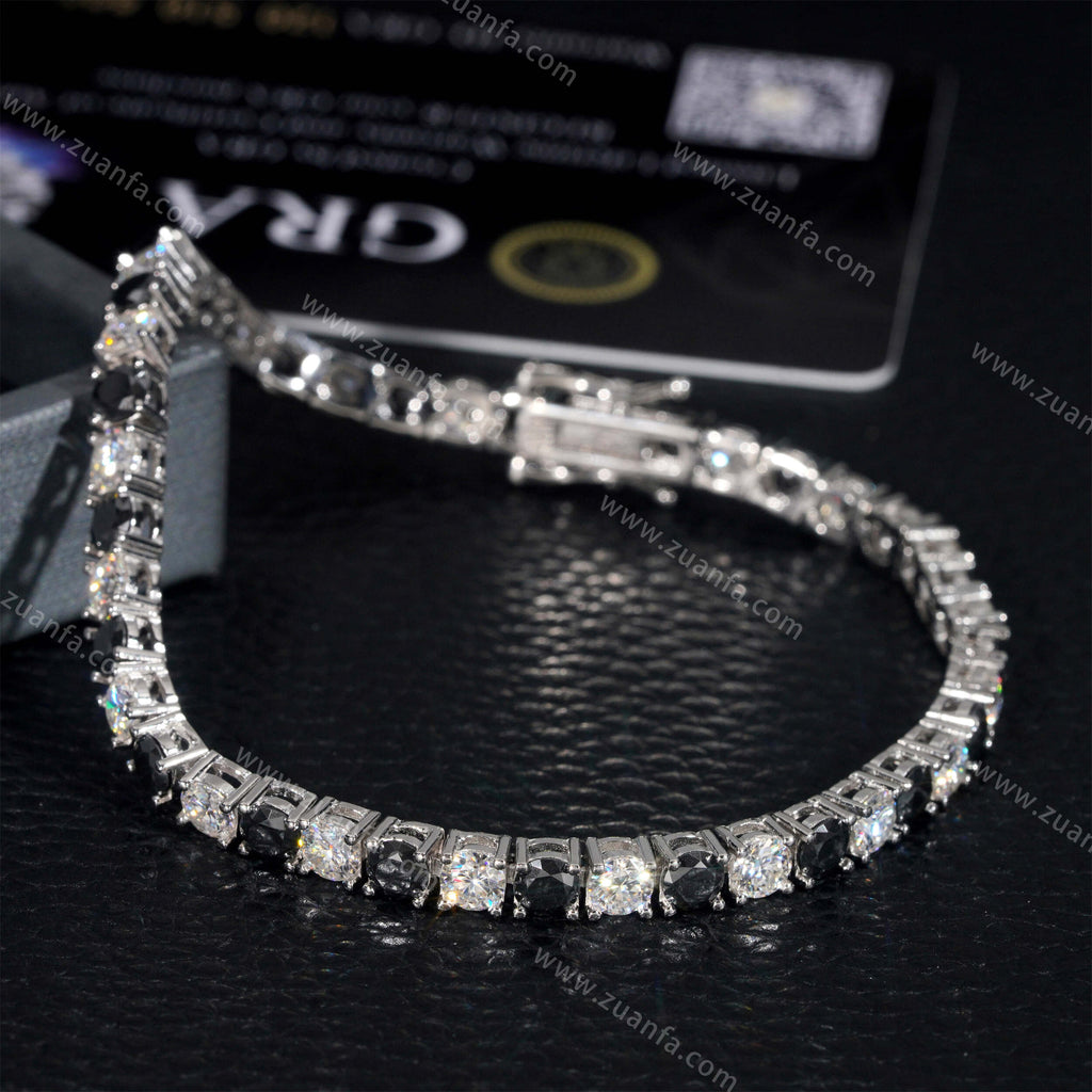 Black Mixed White 4MM Moissanite Tennis Braclelet