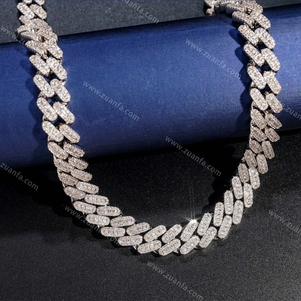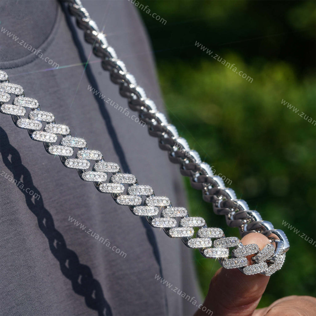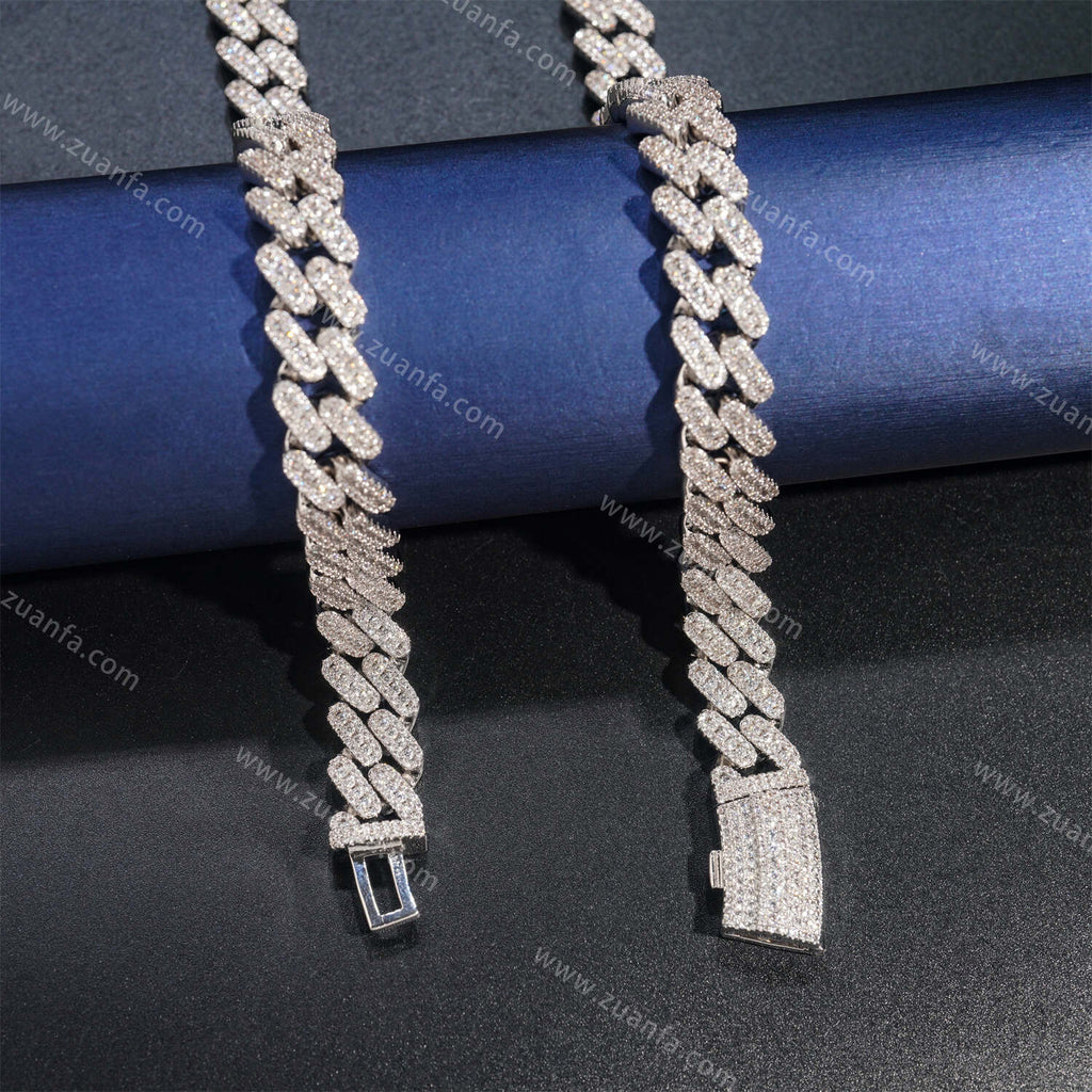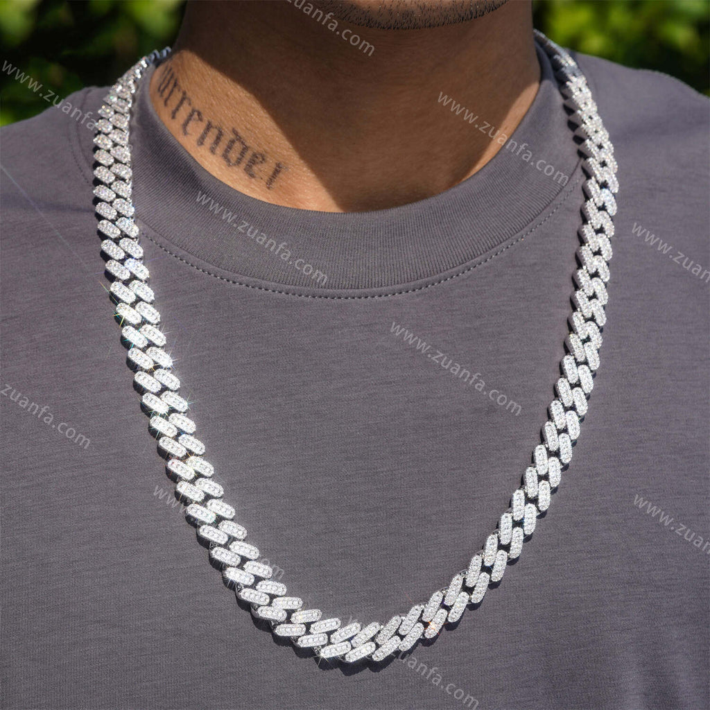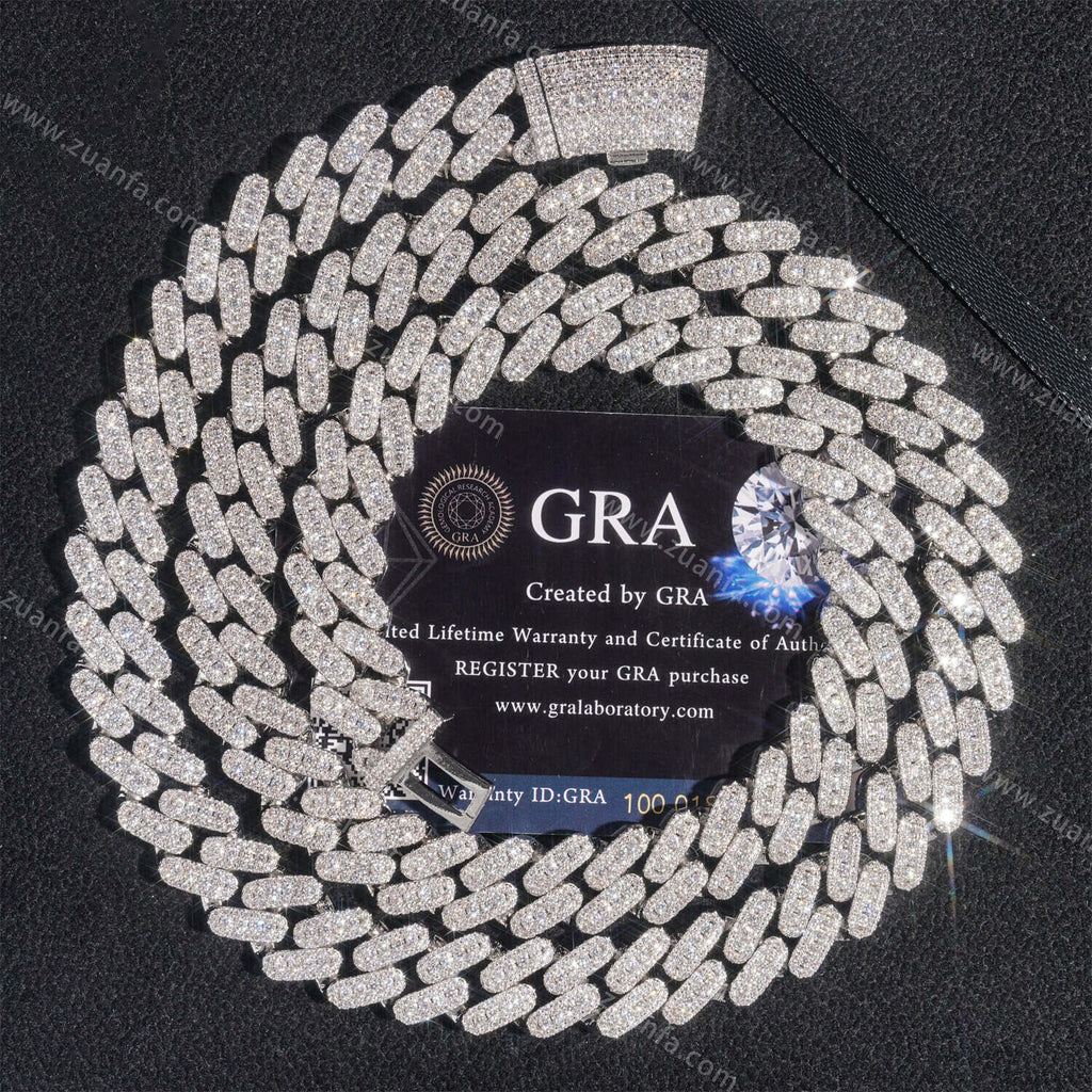 This Zuanfa exclusive 12MM Moissanite Cuban Link Chain is made from 925 sterling silver and plated with a thick layer of 18K Gold.