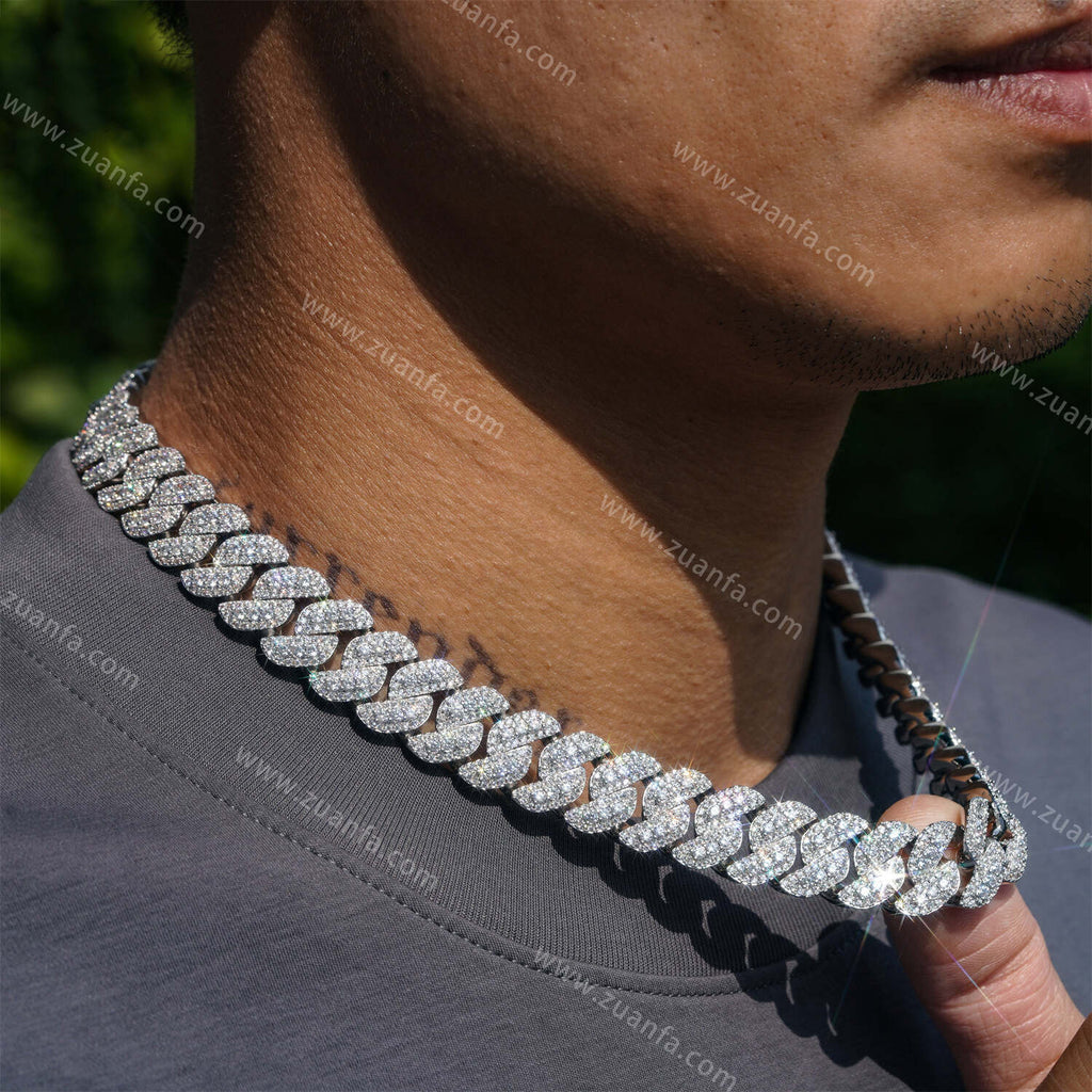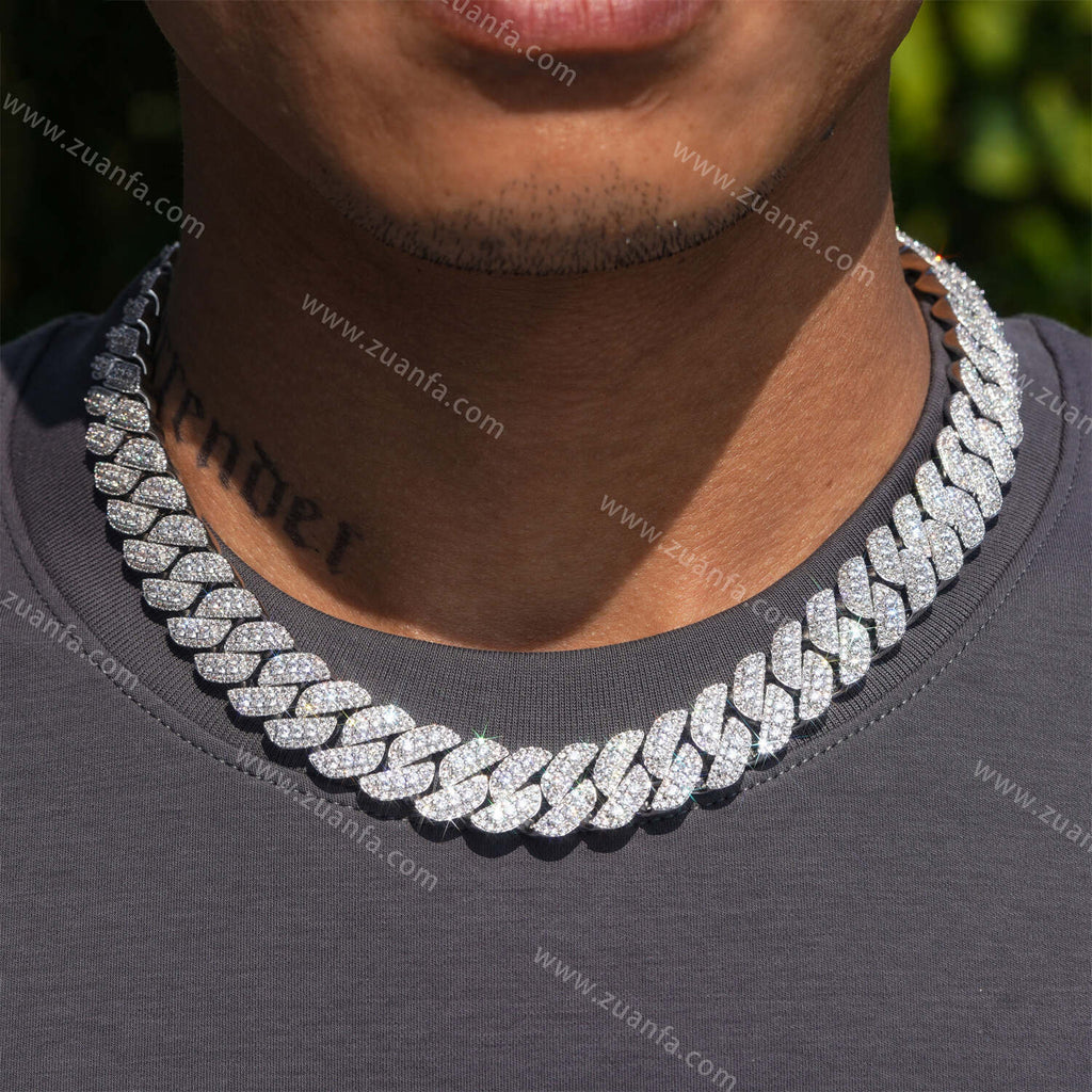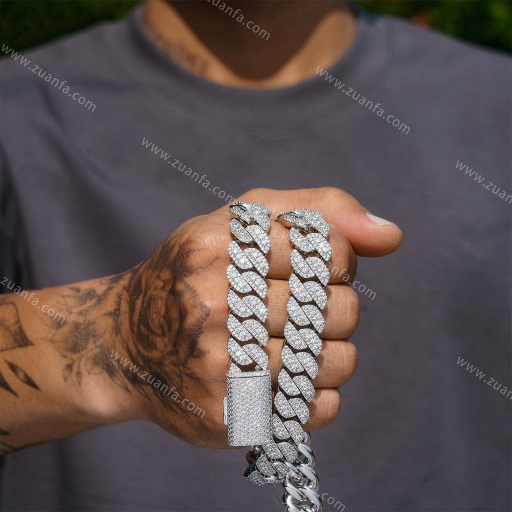 This Zuanfa exclusive 15MM Moissanite Cuban Link Chain is made from 925 sterling silver and plated with a thick layer of 18K Gold.