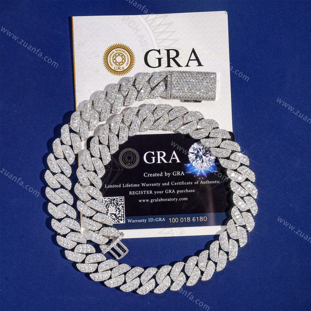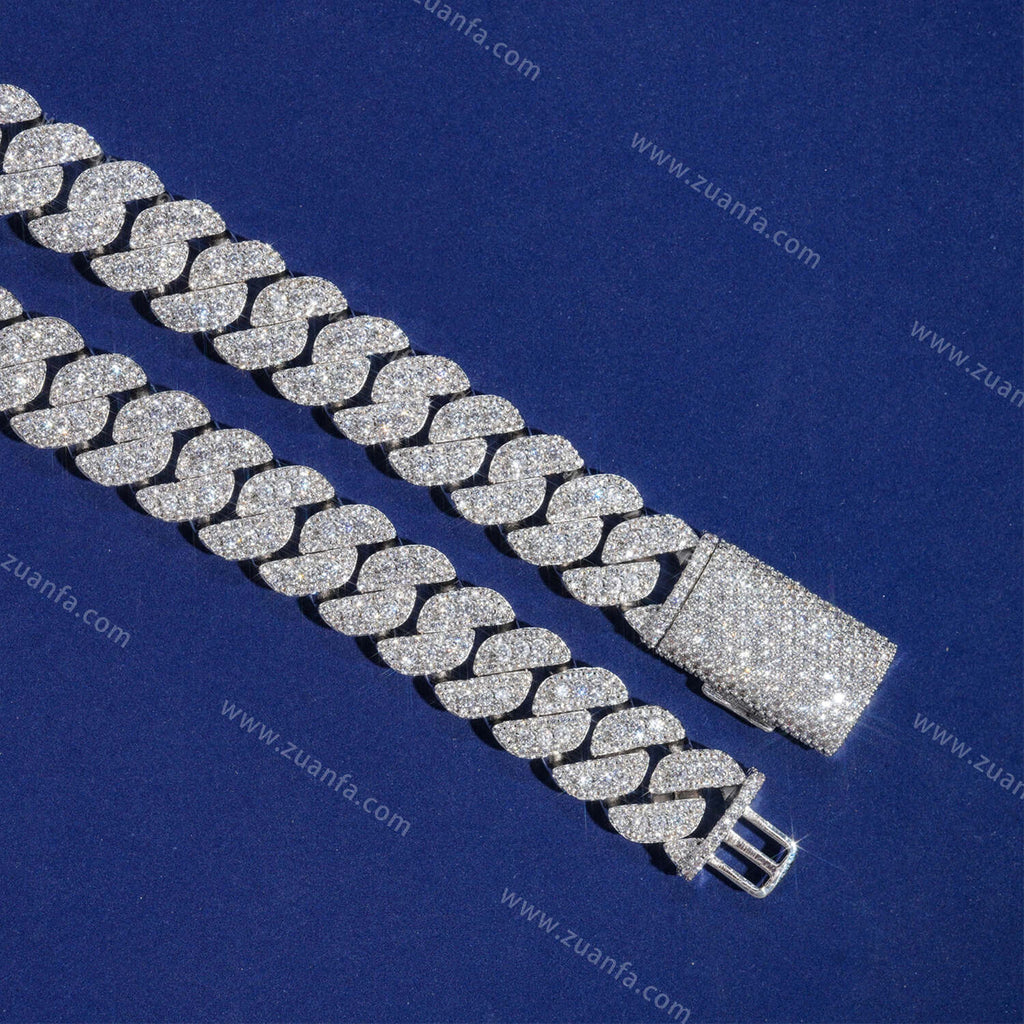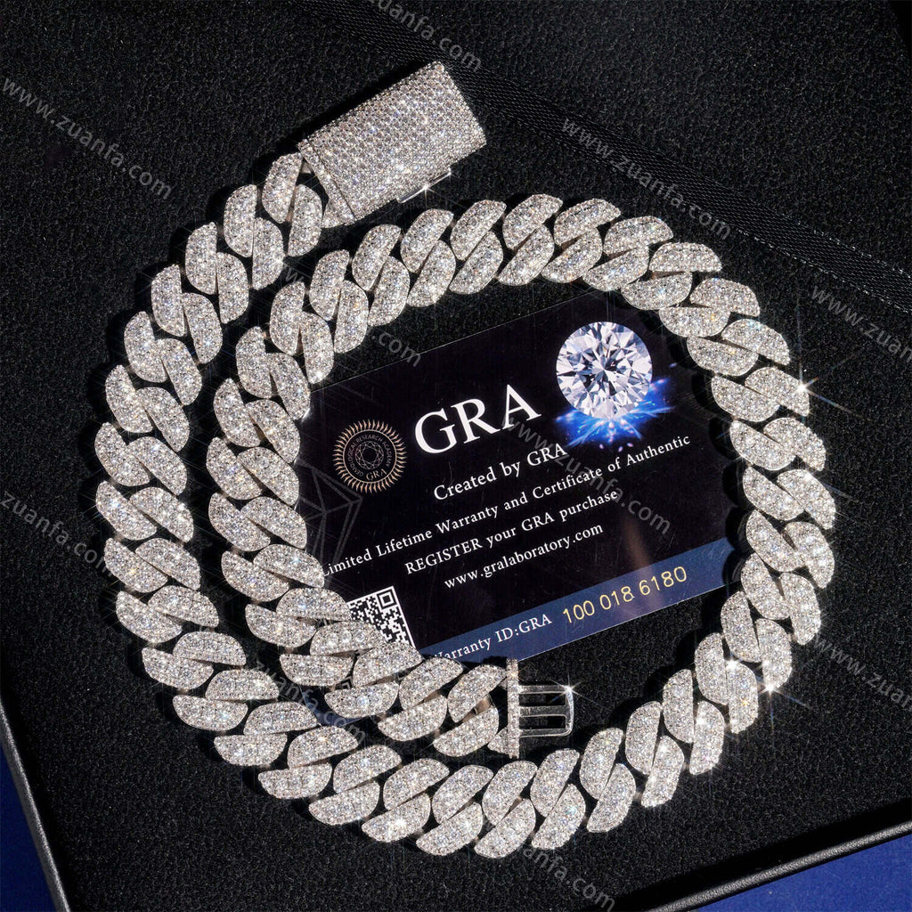 This Zuanfa exclusive 15MM Moissanite Cuban Link Chain is made from 925 sterling silver and plated with a thick layer of 18K Gold.