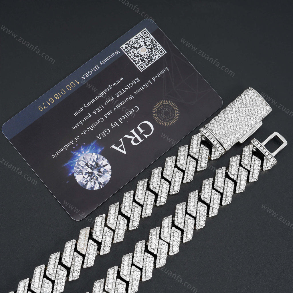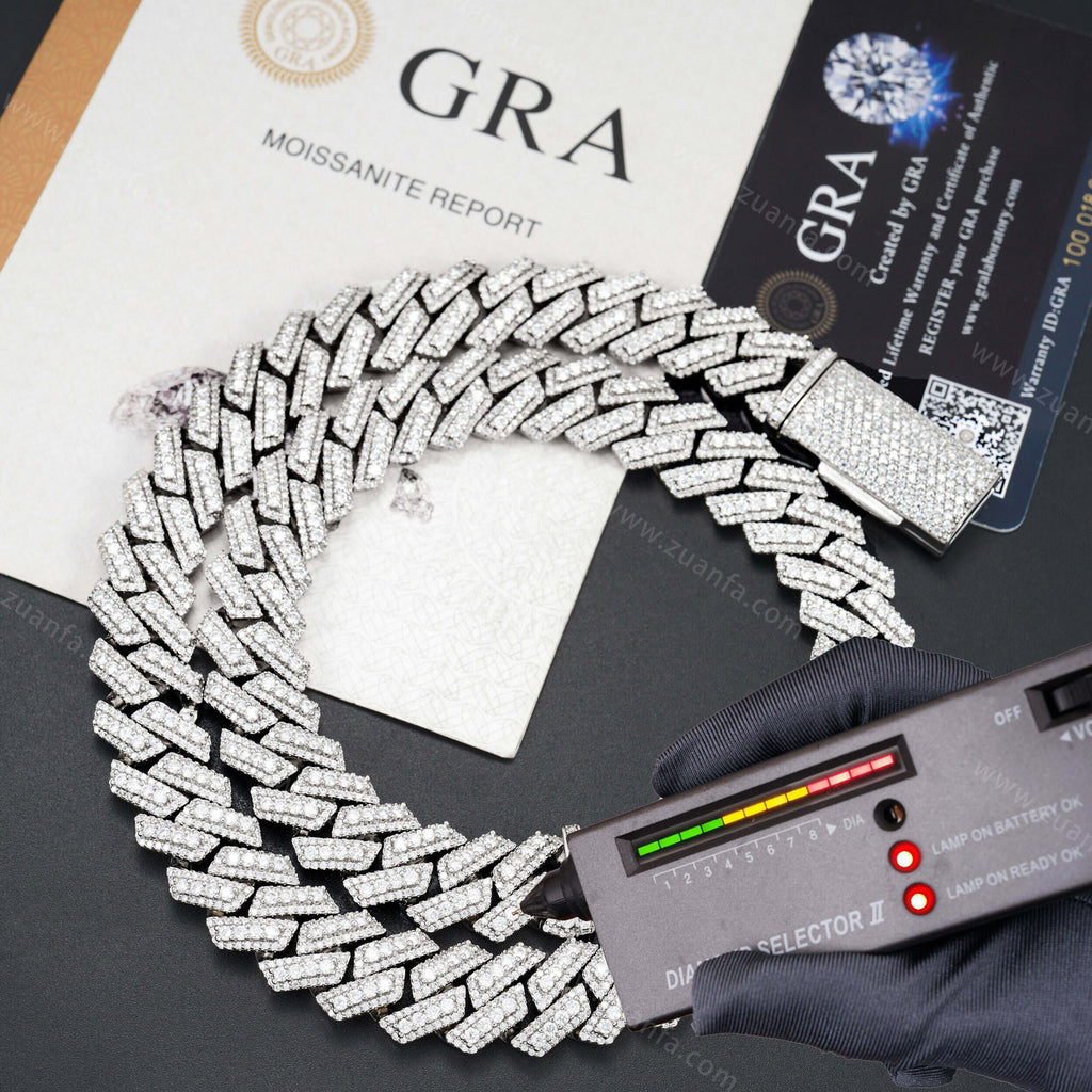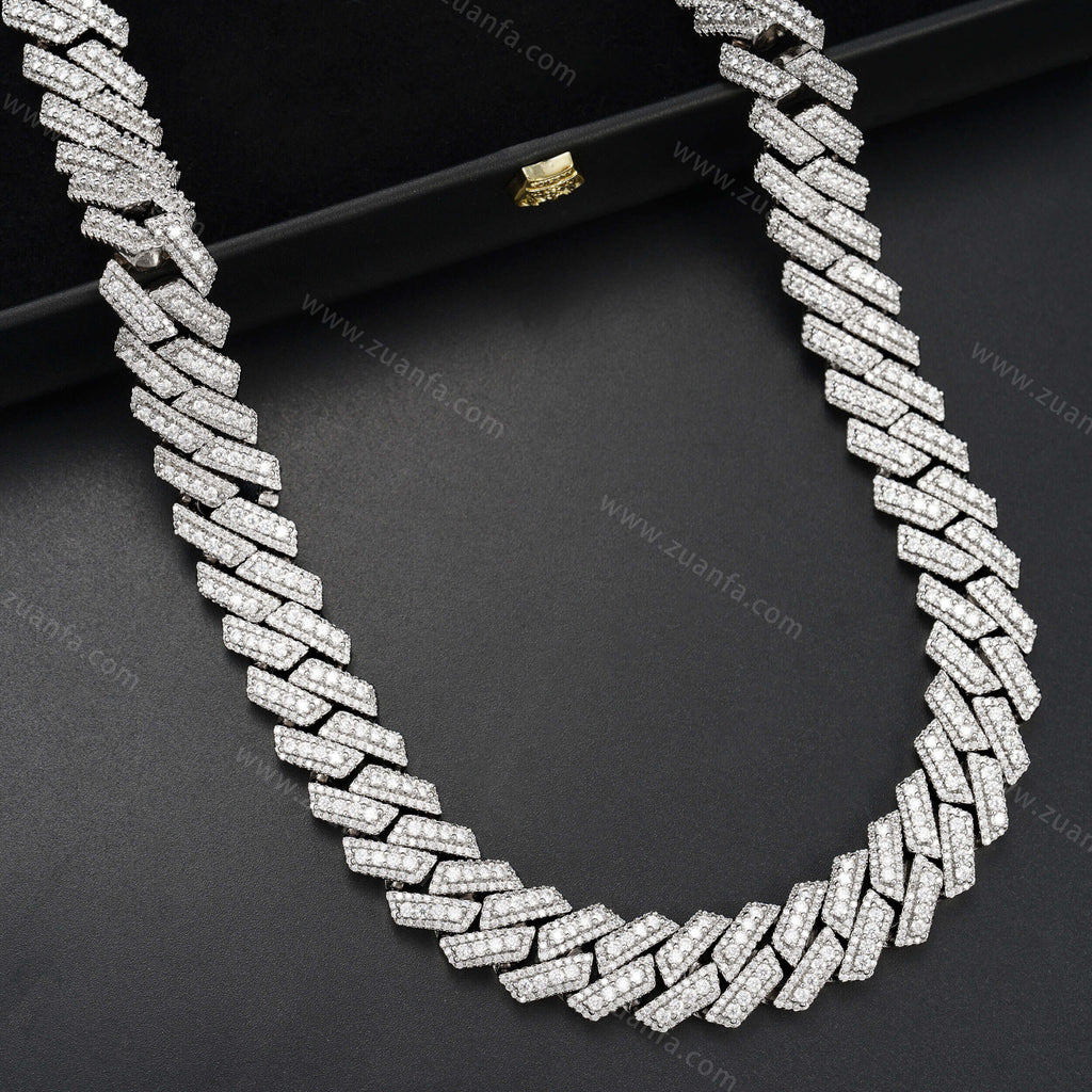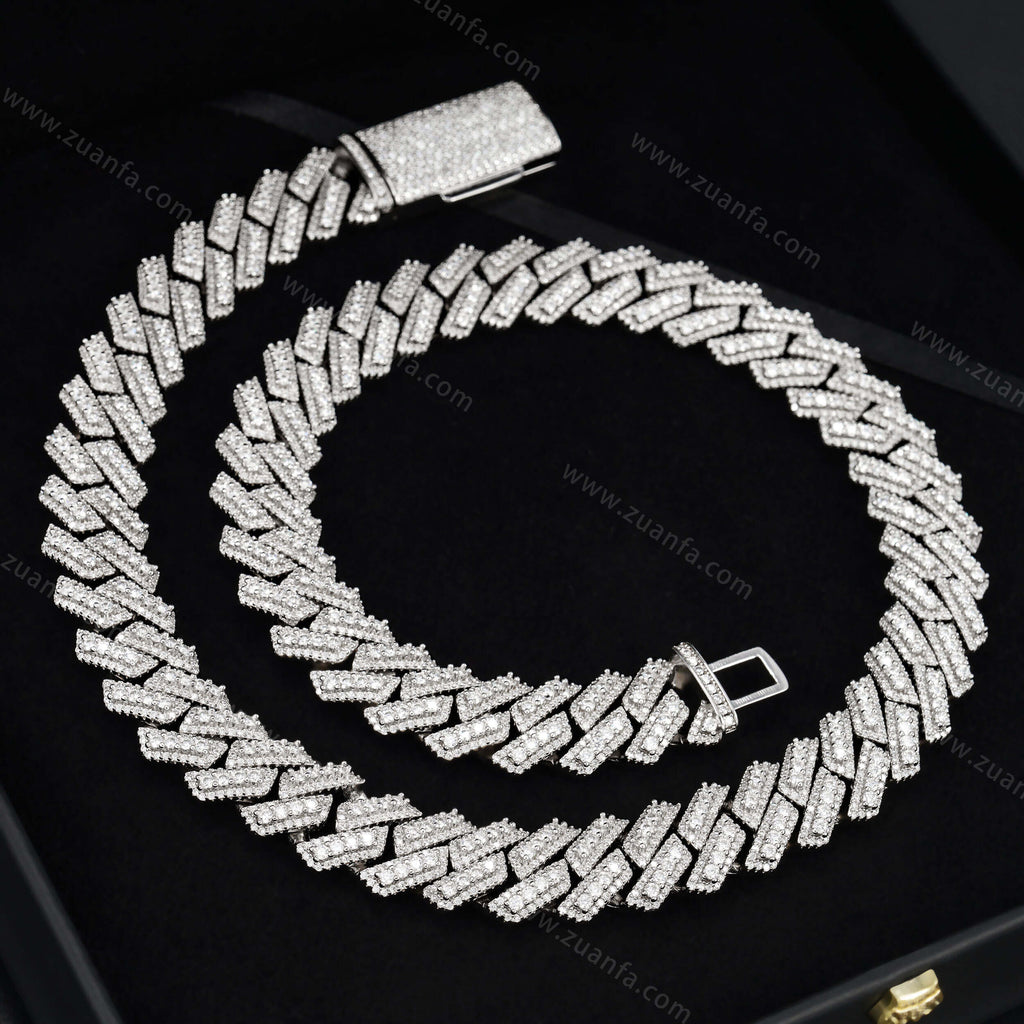 This Zuanfa exclusive 15MM Moissanite Cuban Link Chain is made from 925 sterling silver and plated with a thick layer of 18K Gold.