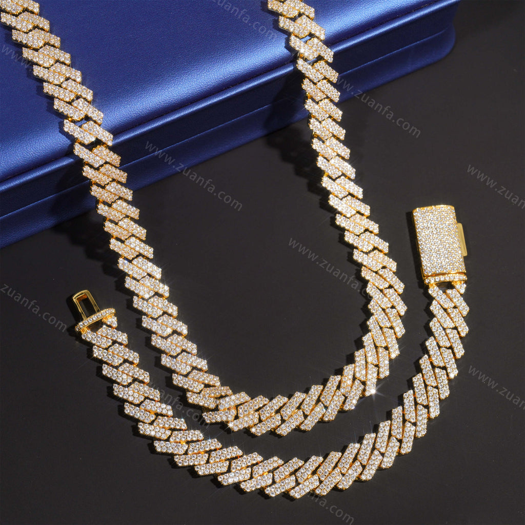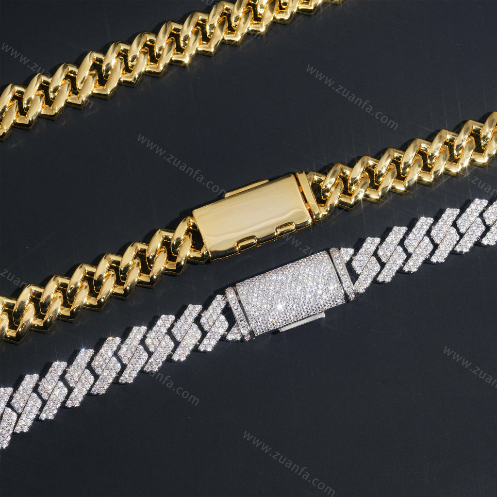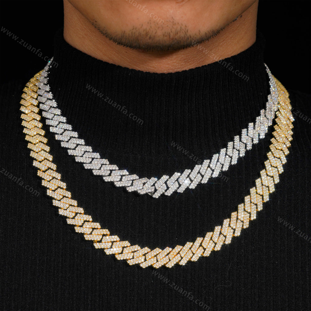 Zuanfa exclusive 13MM Round Diamond Iced Out Cuban Link Chain is now available, made of Brass and plated with a thick layer of 18K Gold.