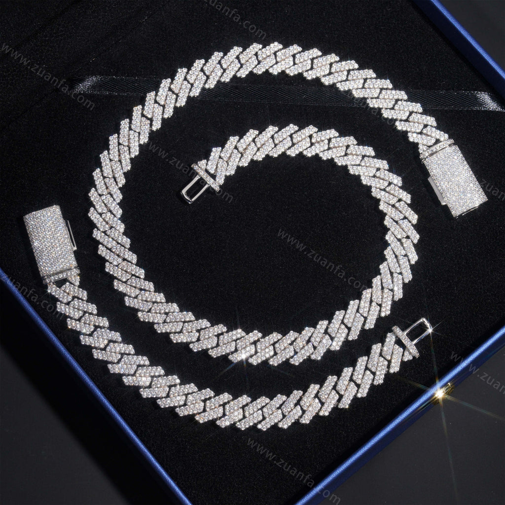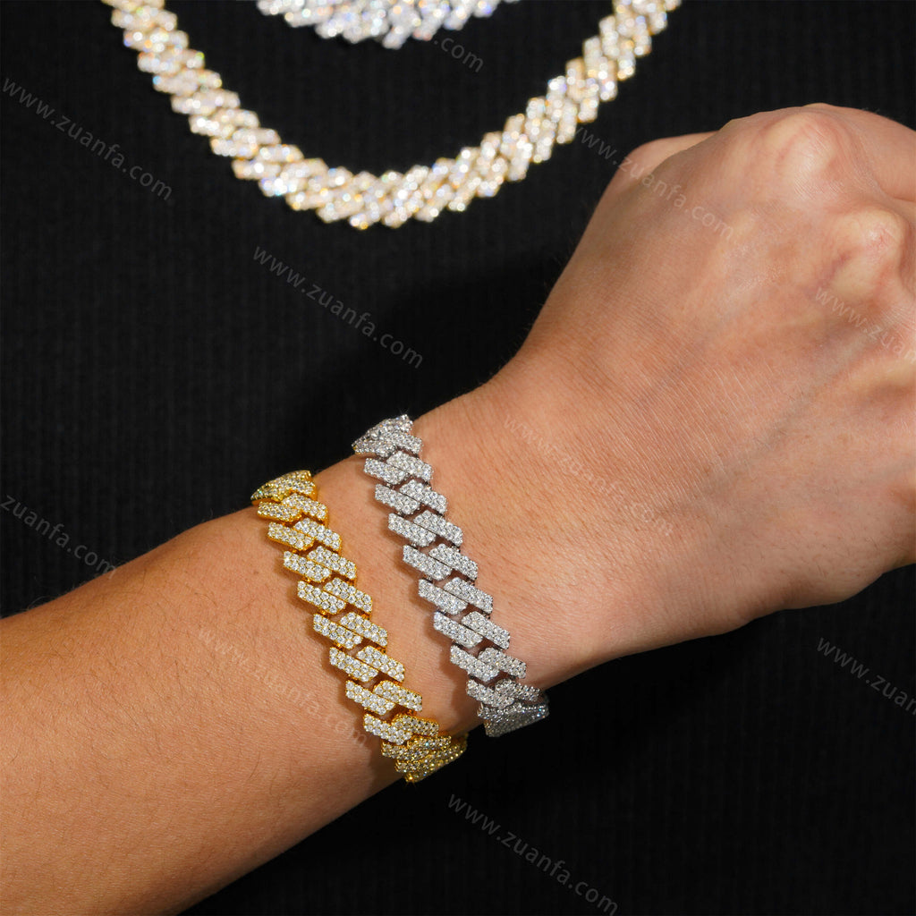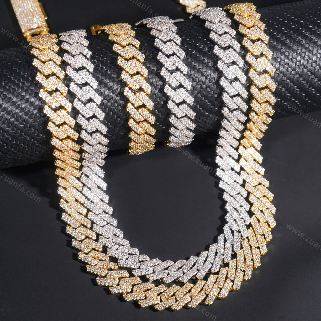 Zuanfa exclusive 13MM Round Diamond Iced Out Cuban Link Chain is now available, made of Brass and plated with a thick layer of 18K Gold.